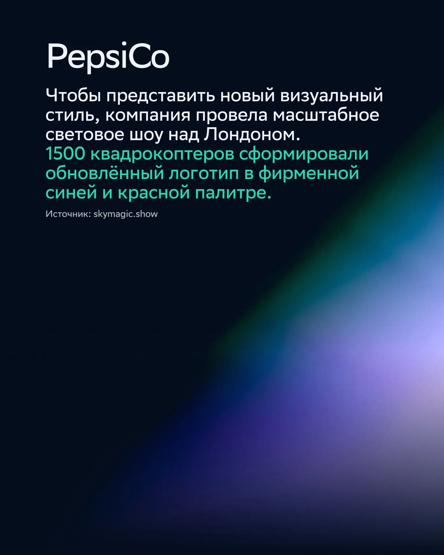 В результате бренды заметно охладели к этому инструменту, и шоу квадрокоптеров стали частью культурных фестивалей и государственных инициатив, особенно в Китае. Они работают как инвестиция в репутацию региона: оживляют городское пространство, генерируют медиаосвещение и привлекают туристов.