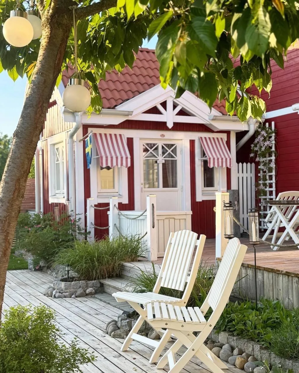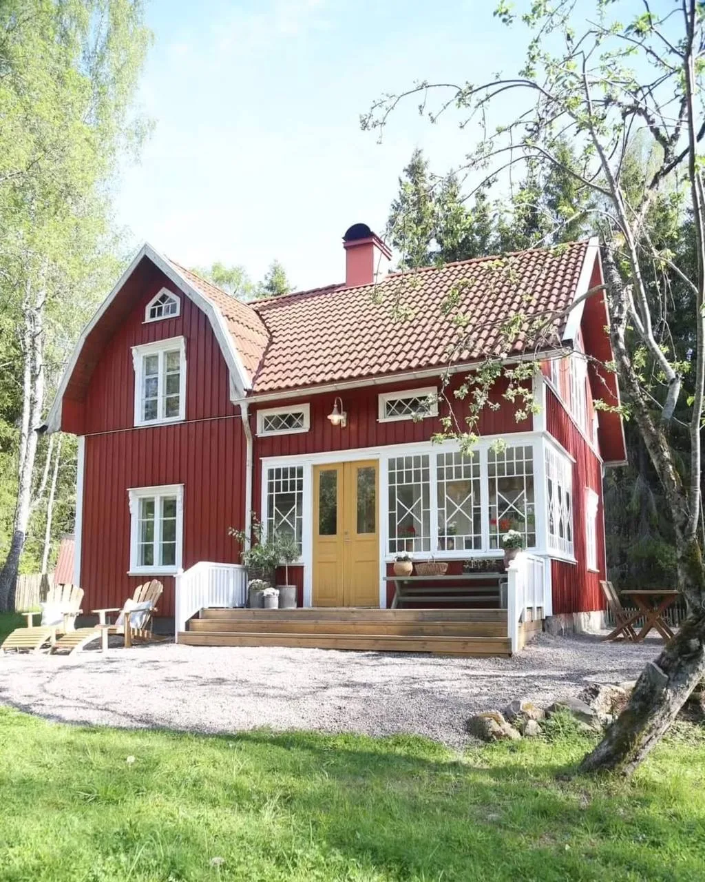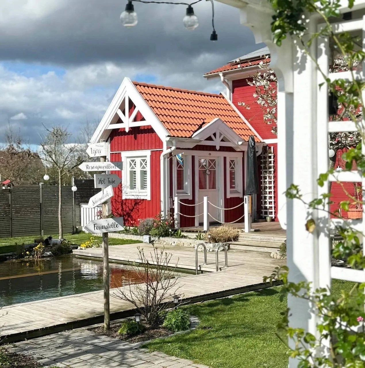 Традиционный красный дом, красивый сад и уют вокруг — это целиком заслуга этой прекрасной семьи! Нам очень нравится выбор цветов и материалов. А также атмосфера: здесь все по-настоящему, и это прекрасно!