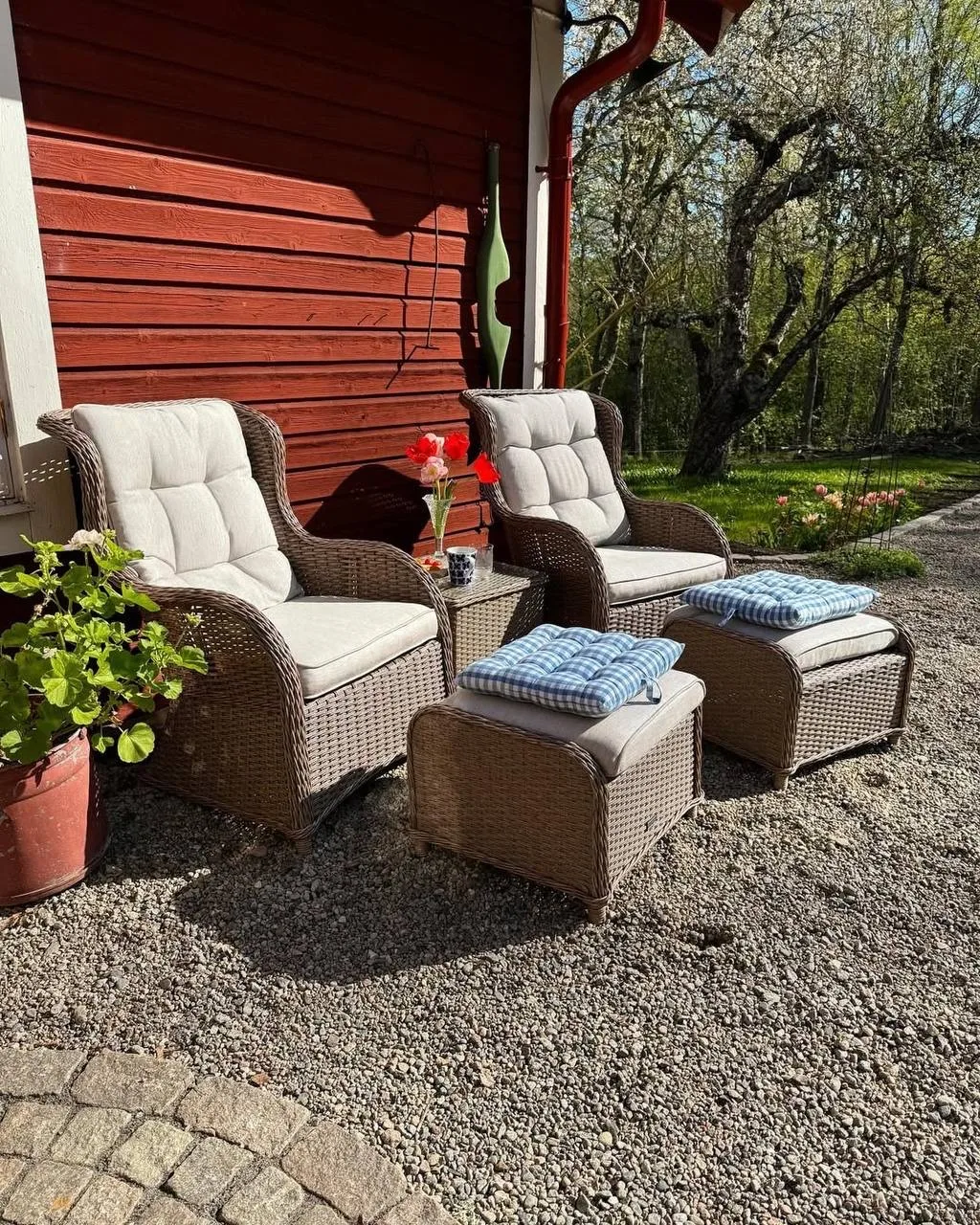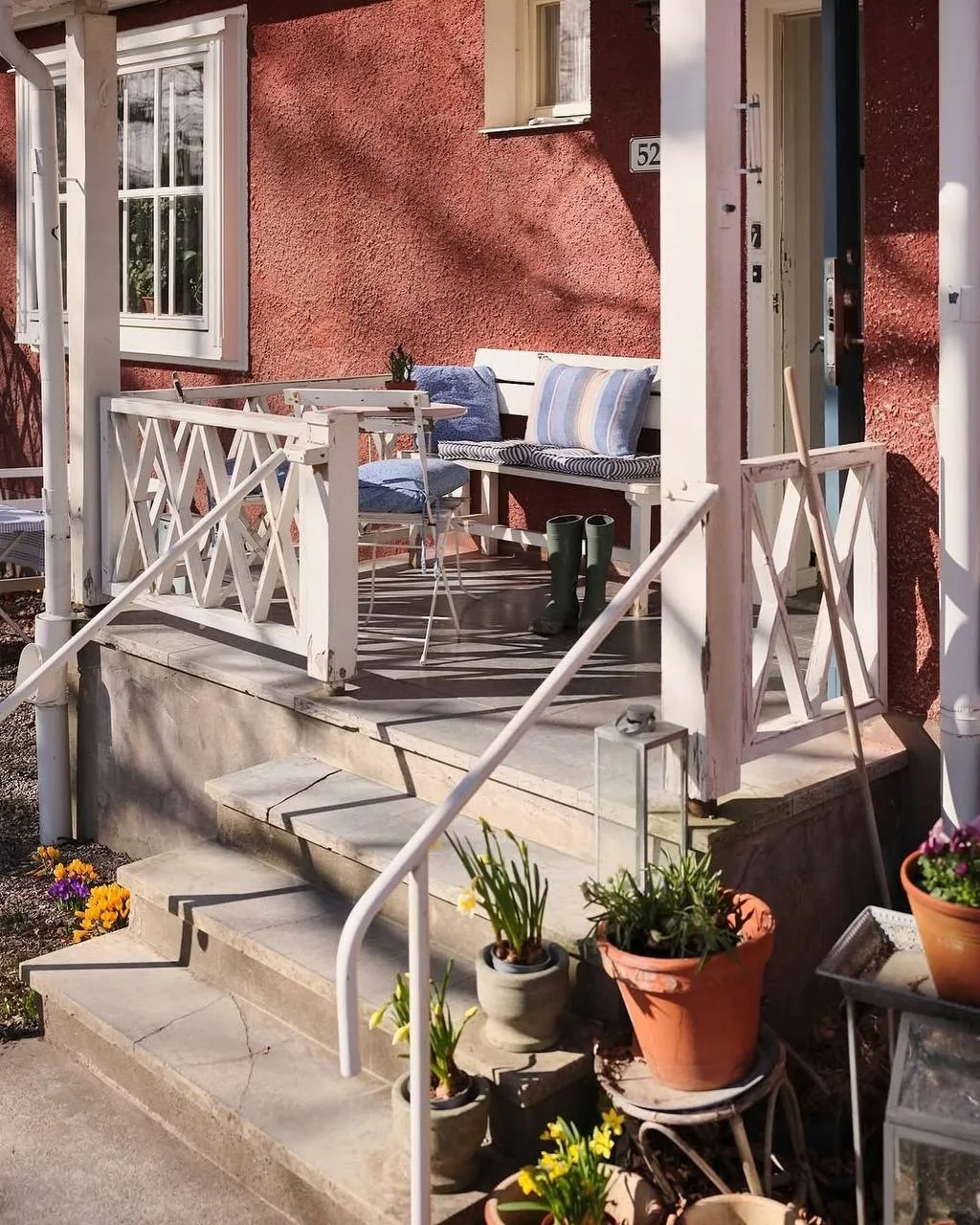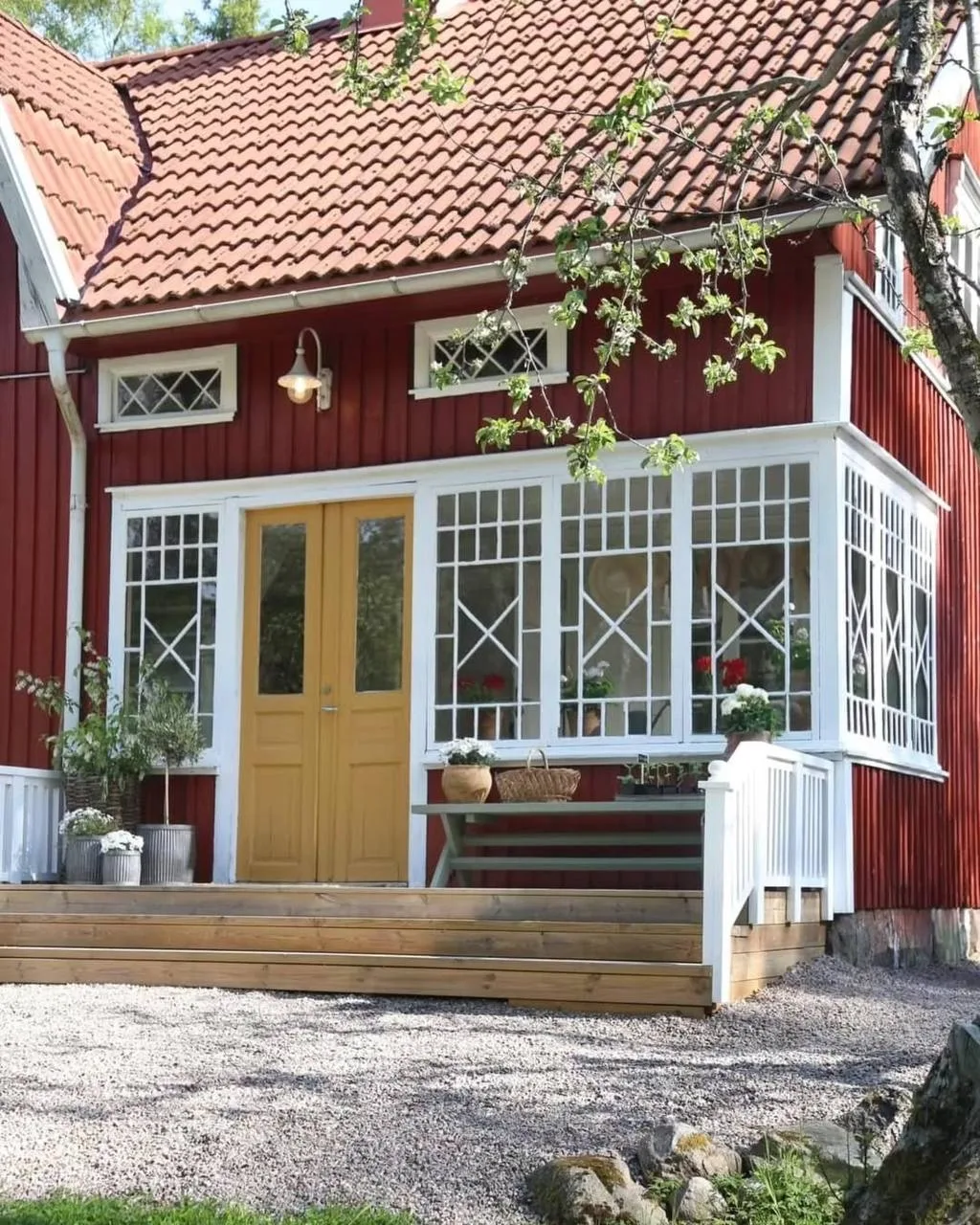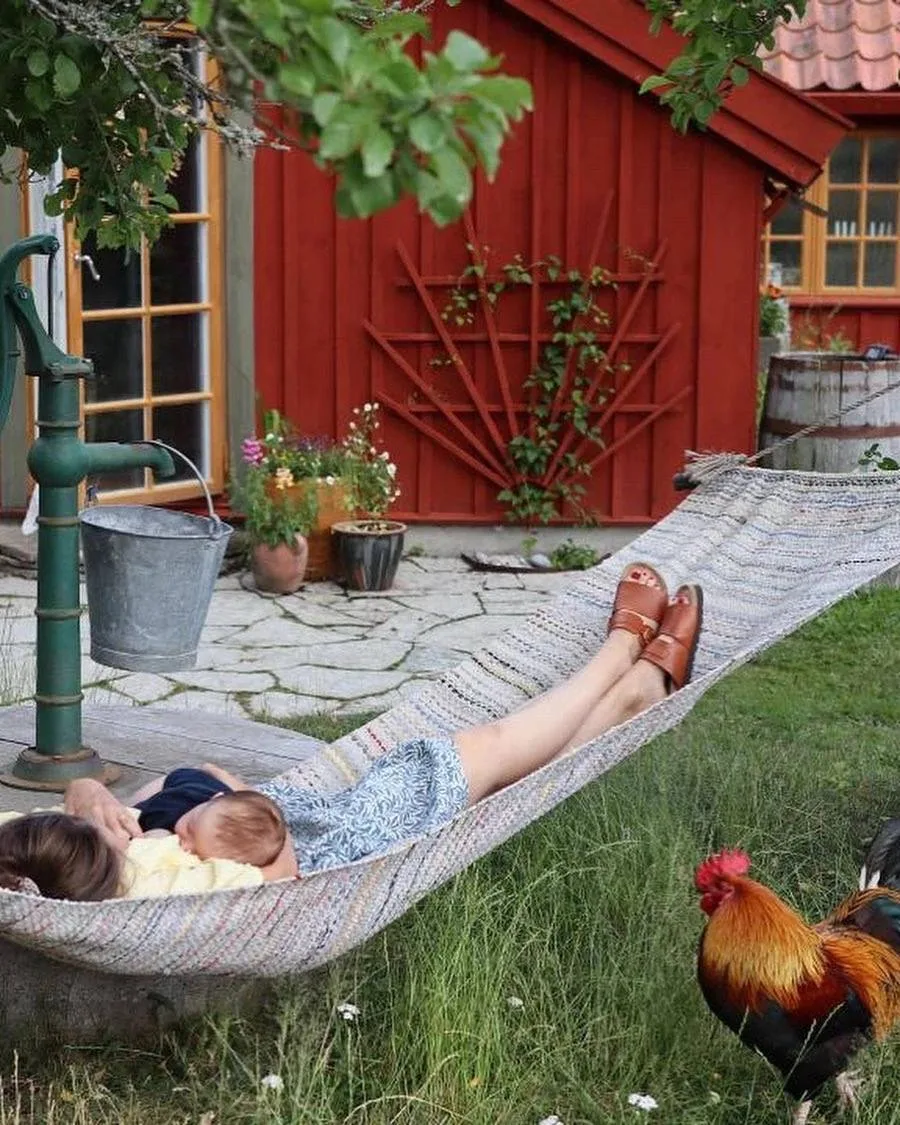 Традиционный красный дом, красивый сад и уют вокруг — это целиком заслуга этой прекрасной семьи! Нам очень нравится выбор цветов и материалов. А также атмосфера: здесь все по-настоящему, и это прекрасно!