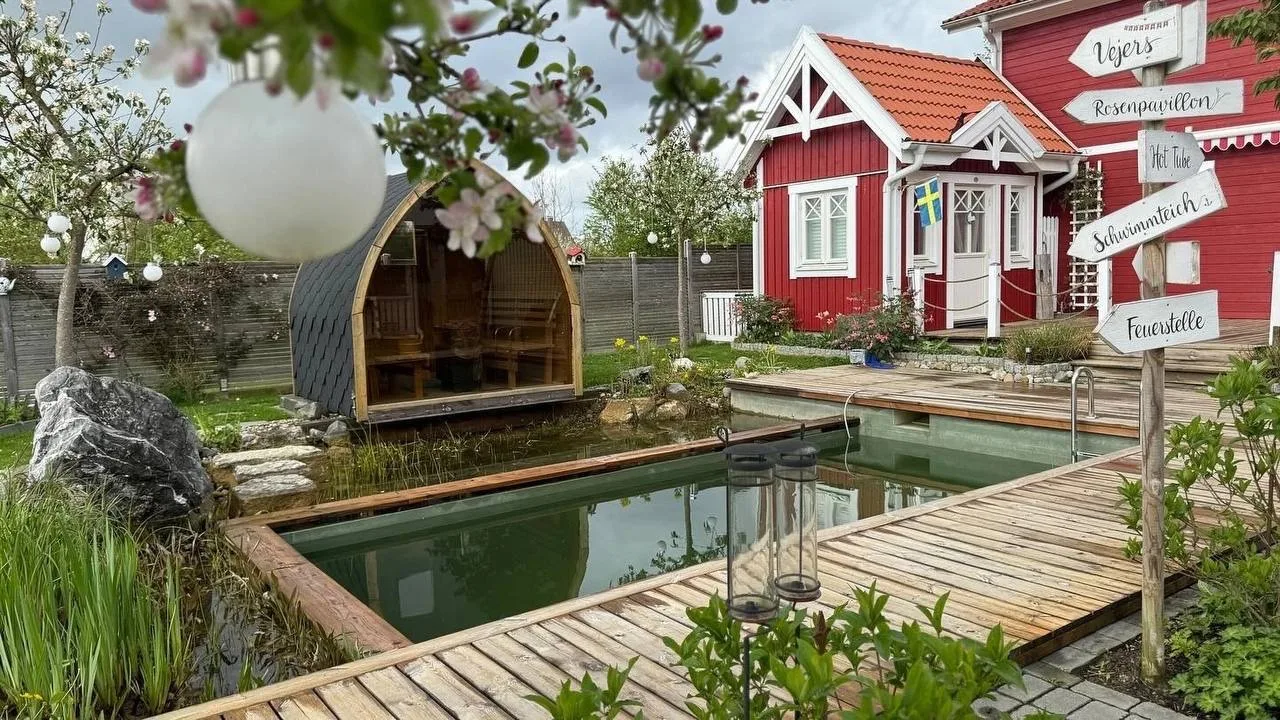 🐝🌸Уютный шведский домик с небольшим бассейном и маленькой сауной