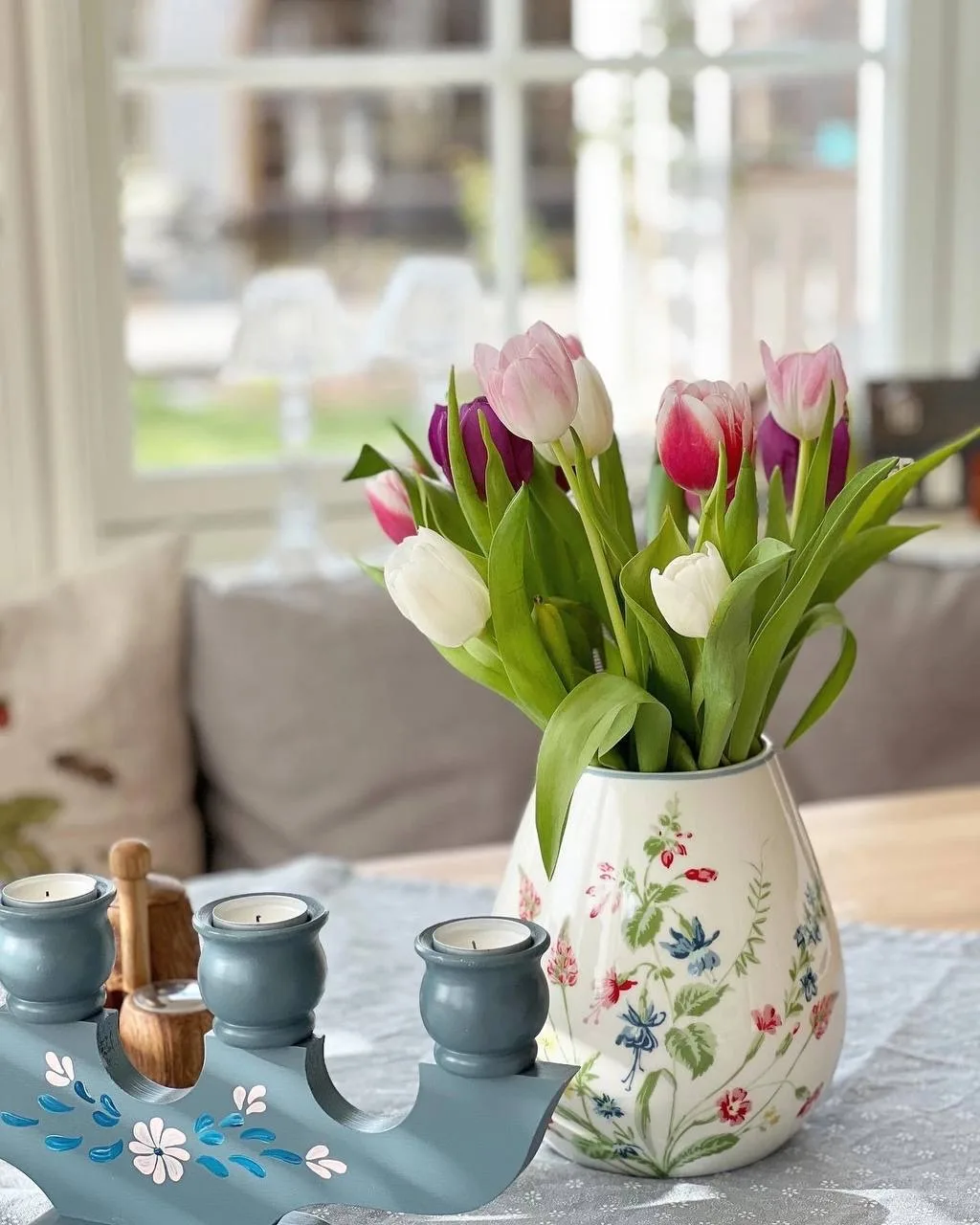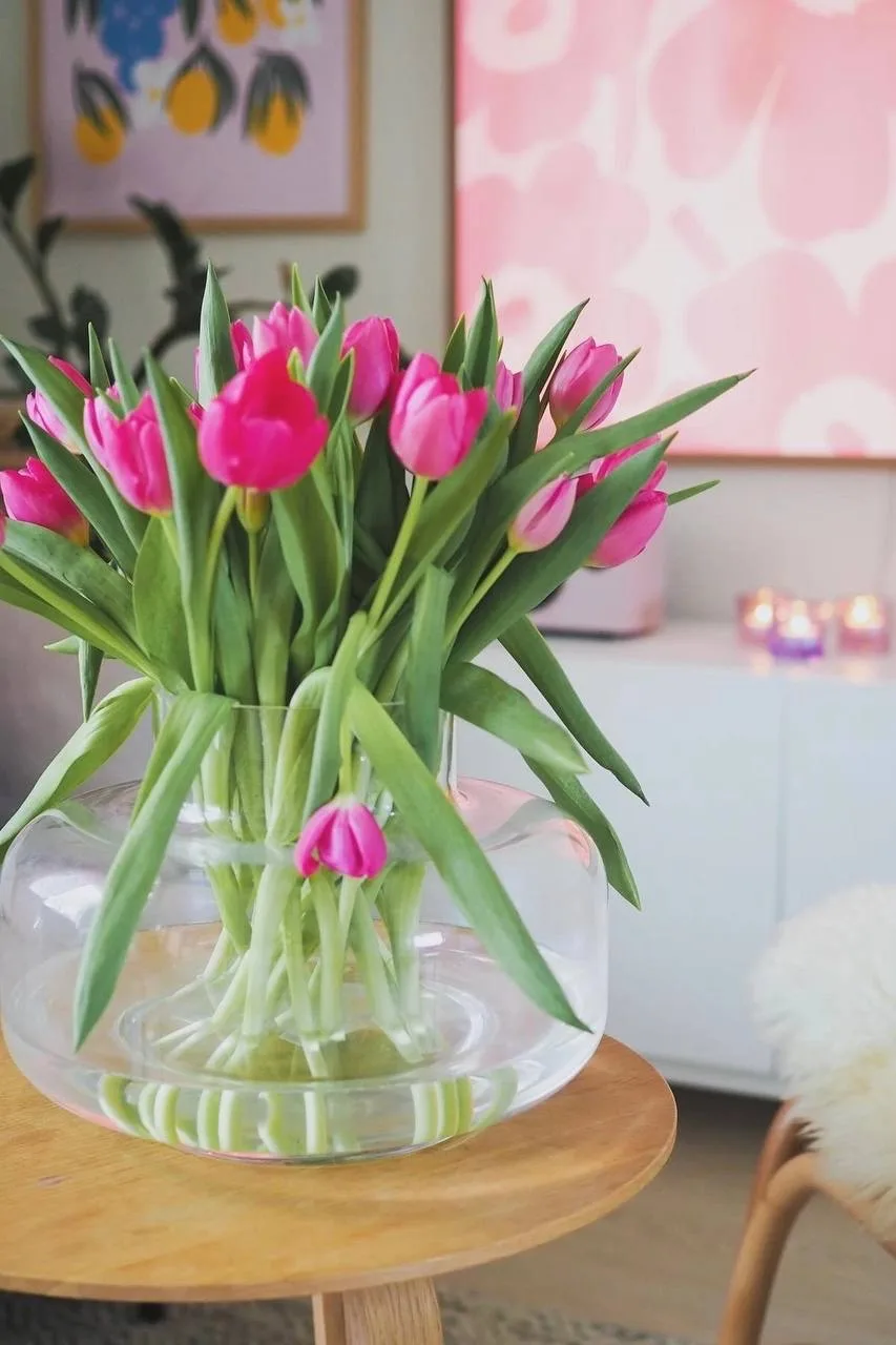 Меняйте воду в вазе каждый день или через день. И обрезайте стебли. Это помогает предотвратить рост бактерий и дольше сохранить тюльпаны свежими.
