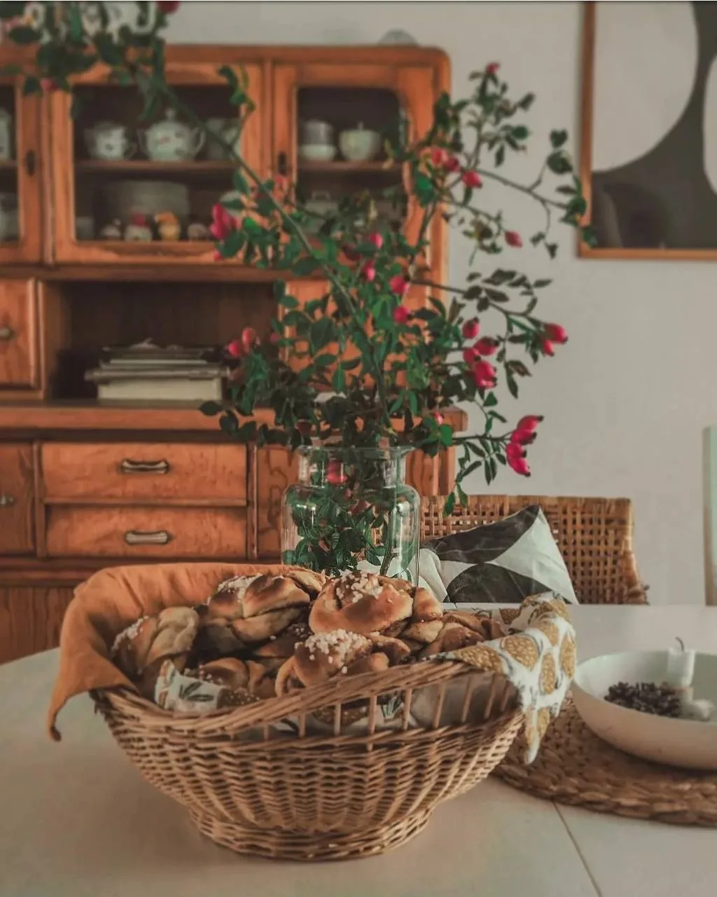 🌸🍃✨Уютные зарисовки дома с винтажным и обоями и красивой мебелью, очаровательная хозяйка которого обожают печь булочки, и делает это постоянно. Аромат в доме стоит волшебный!