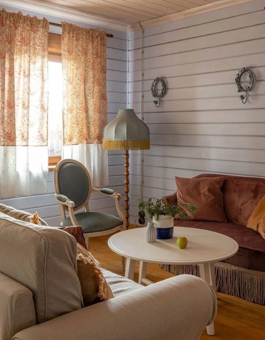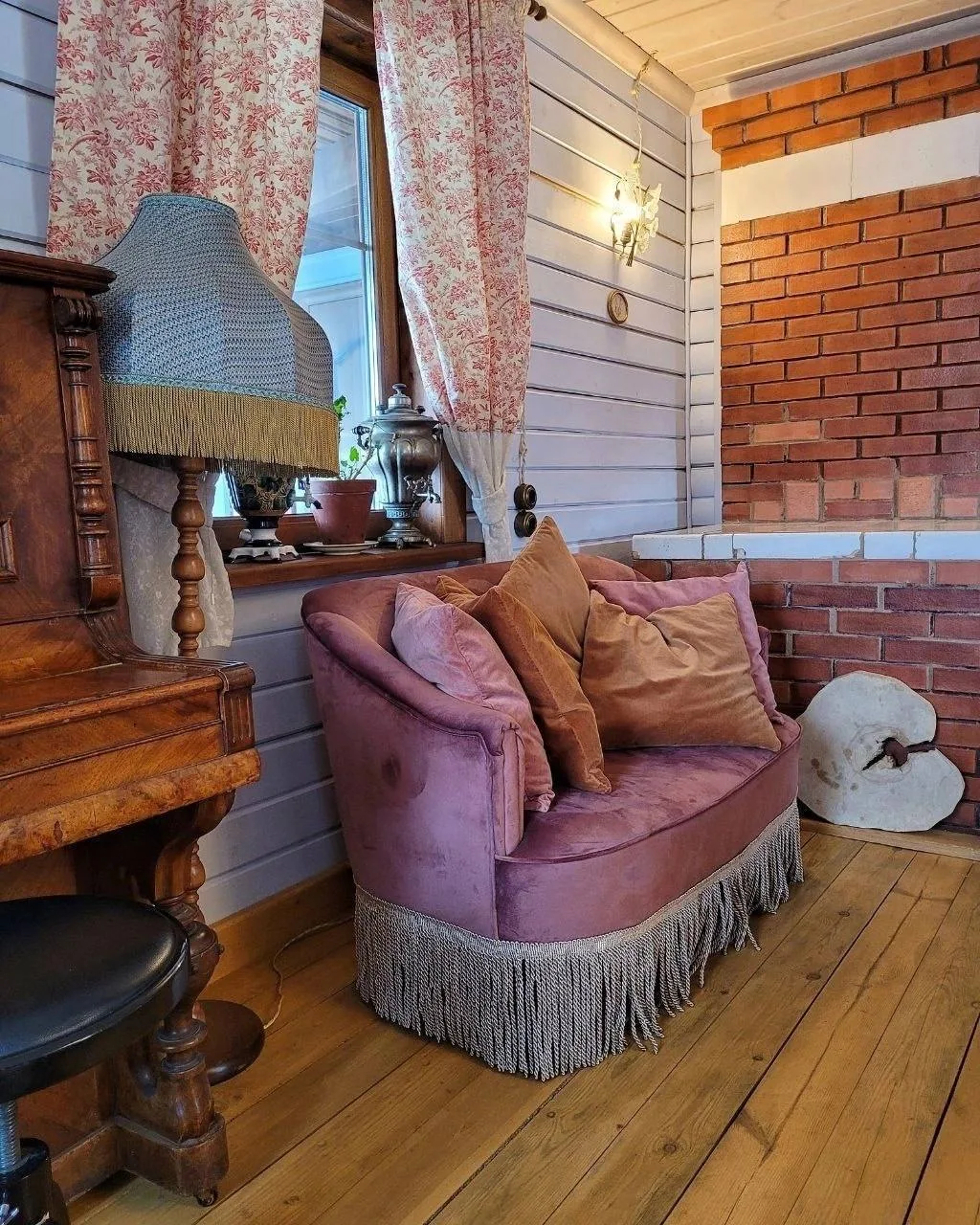 Татьяна, в свою очередь, занялась оформлением дома, наполнив его теплом и уютом. Мебель и декор была приобретена на барахолках и у знакомых 🛋️🔥 Каждая деталь интерьера была подобрана с любовью, что сделало их дом площадью всего 87 кв.м. по-настоящему уникальным и гостеприимным.