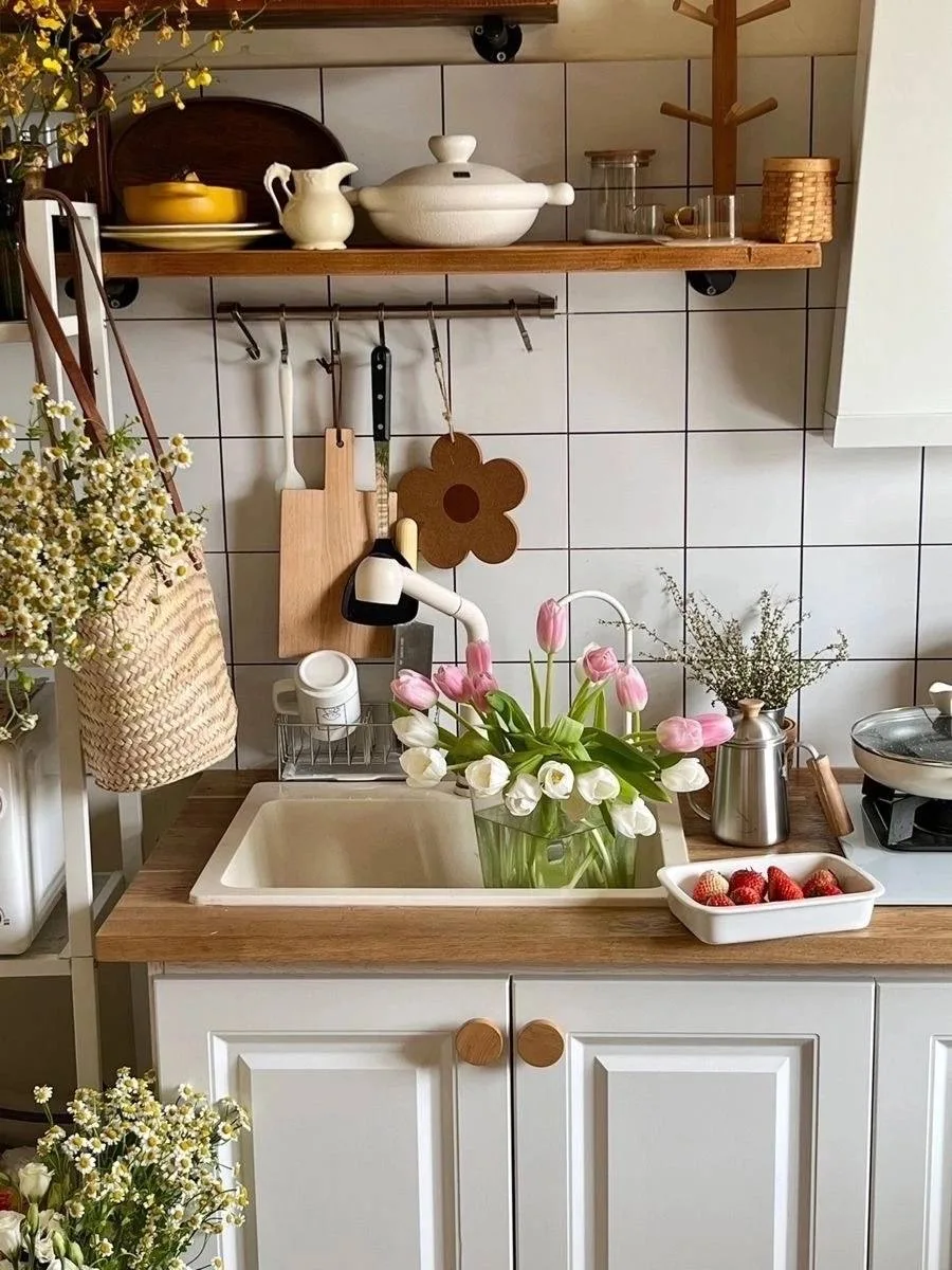 🍓🌷✨Эстетика уютной белой кухни, хозяйка которой обожает варенье из клубники 🍓