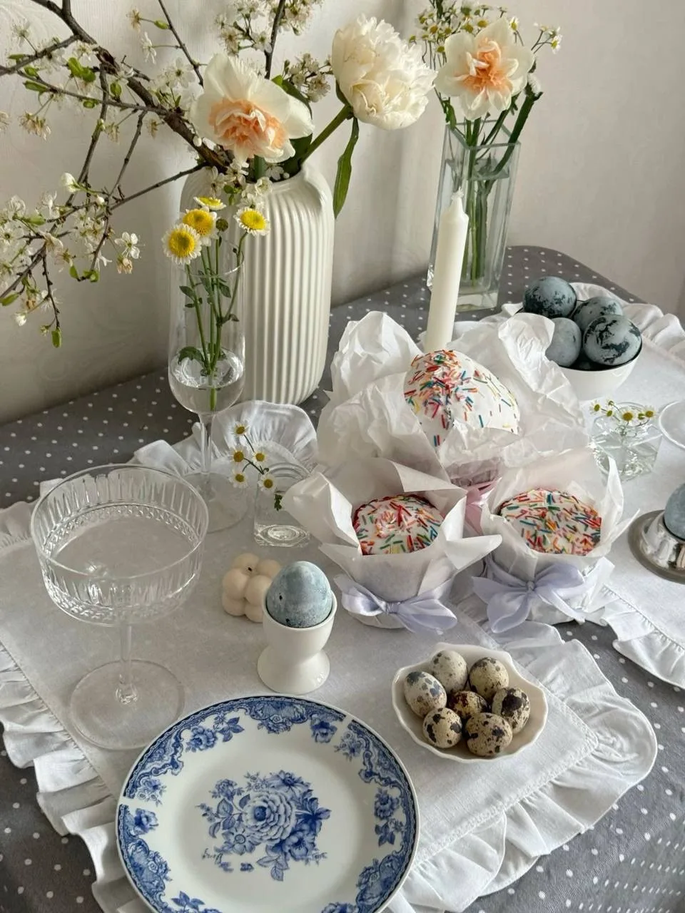 Нежные пастельные чашки, элегантная скатерть, керамика с пасхальным мотивом и натуральные детали и украшения сделают ваш стол похожим на сказочный🌺🌲