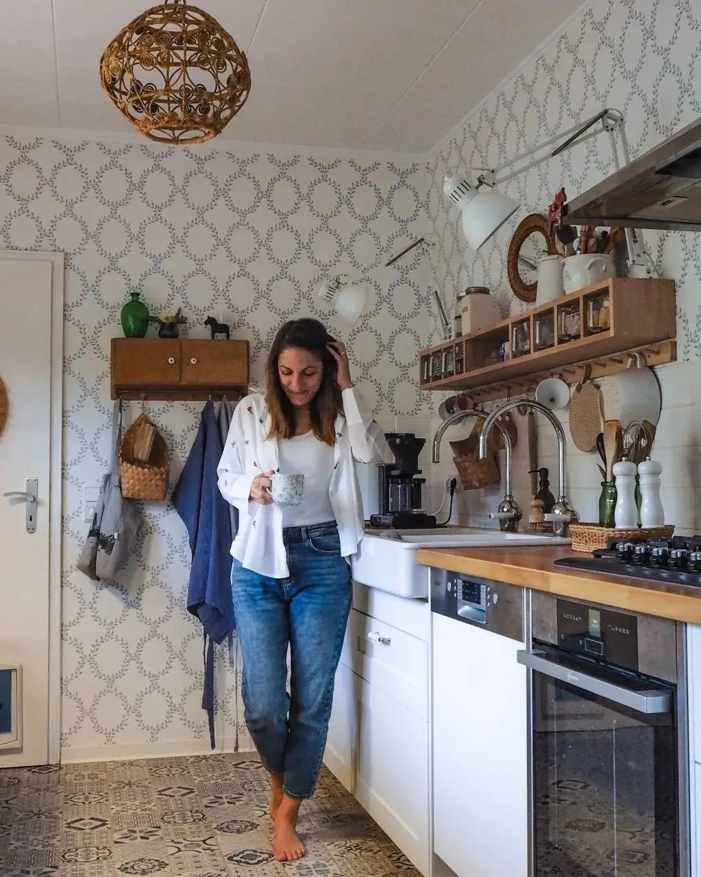 ✨🌷Самоклеящаяся плитка + немного краски и кухня стала более уютной и в стиле 70х! 🫶🥹