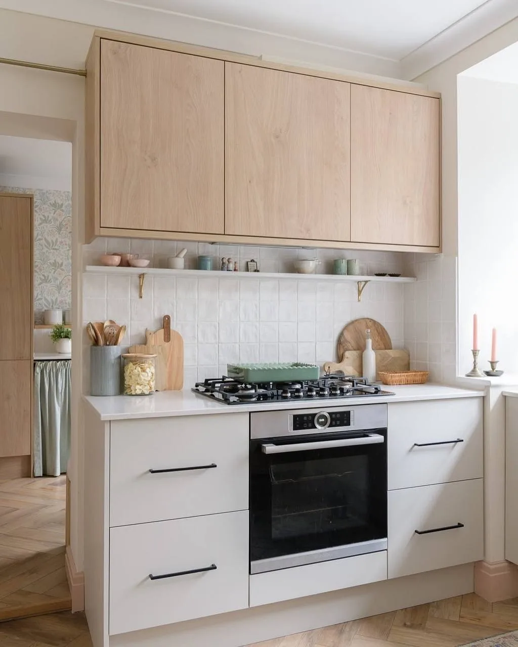 Такая плитка довольно бюджетна и легко преобразит любую кухню, особенно в аренде 🥹 Что и произошло с кухней соседей Стефани, снимающих квартиру