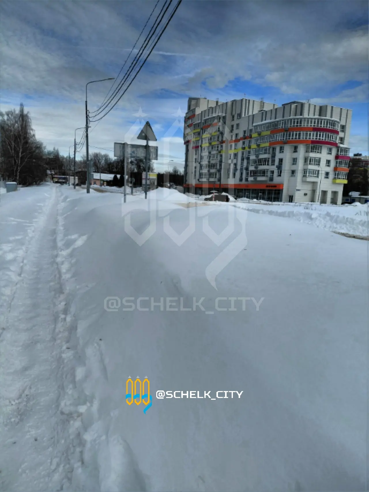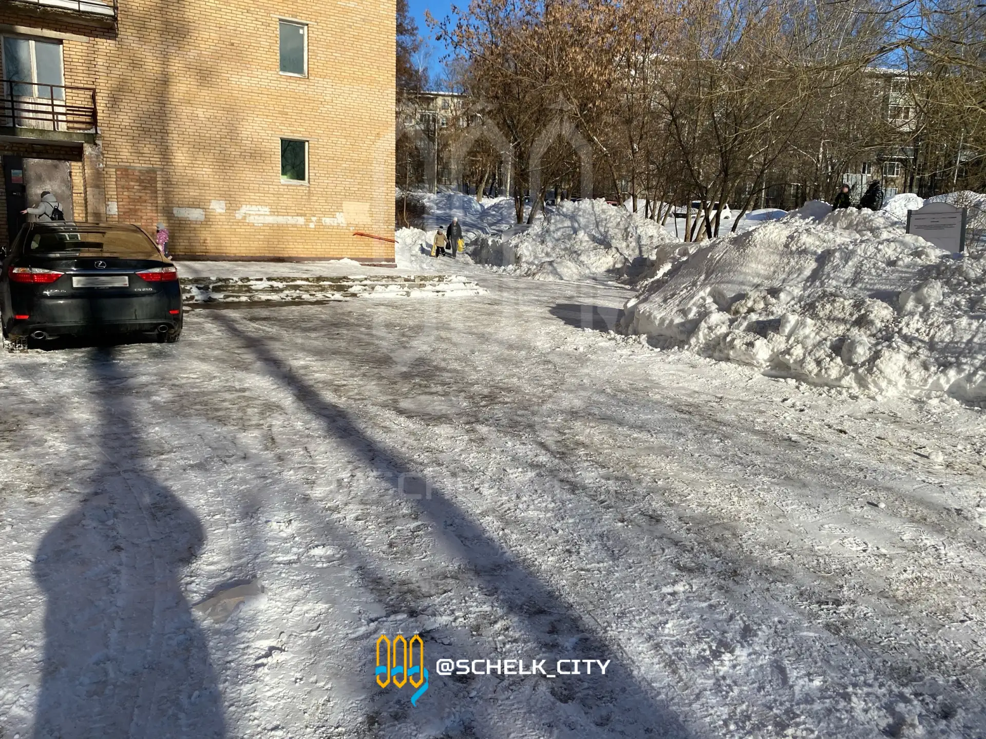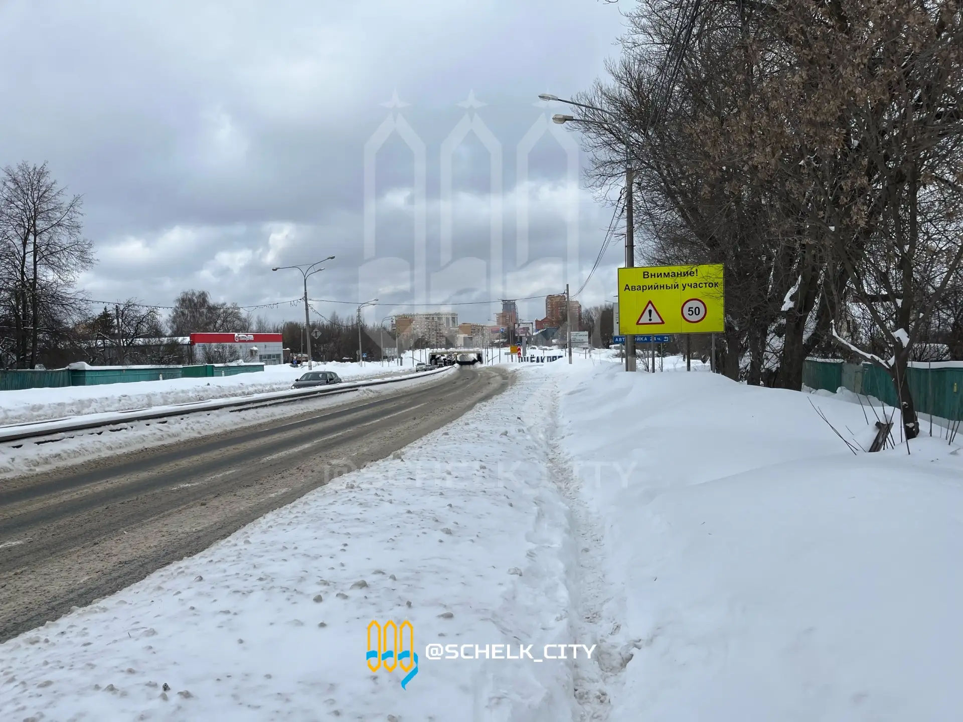 "«Дорога жизни» в Загорянке, ул. Пушкина. Шоссе под слоем снега. Снег не вывозился за зиму ни разу, складируется вдоль заборов в кучи высотой 2–3 м. Весной вся эта субстанция с реагентами потечёт на участки жителей. На протяжении почти километра завалили кучами асфальтированную пешеходную дорожку на чётной стороне. На нечётной стороне ул. Пушкина протоптанную тропу тоже начали заваливать снегом. Вопрос к Администрации: как добраться до платформы пешком? Ответы типа «на машине», «весной», «в обход» не прокатят», — пишет подписчик «ТЩ»."