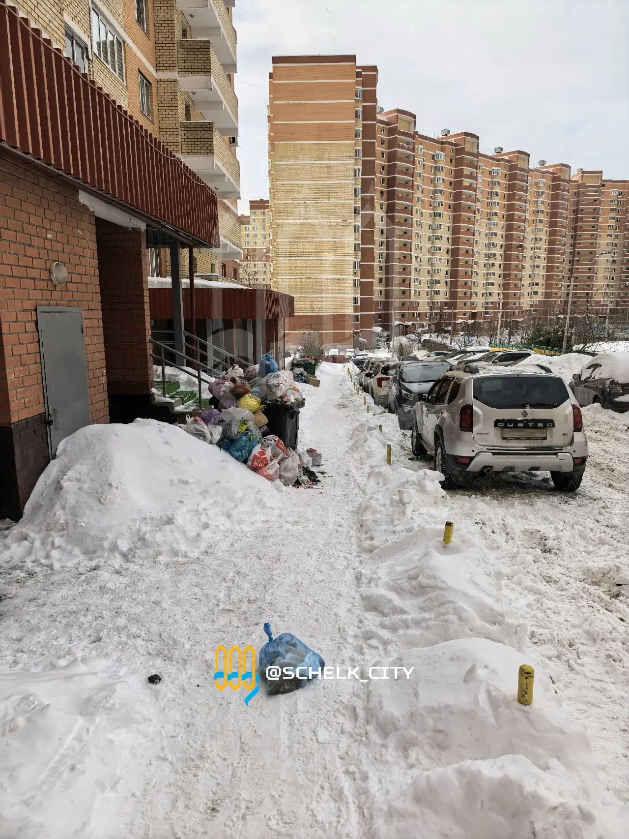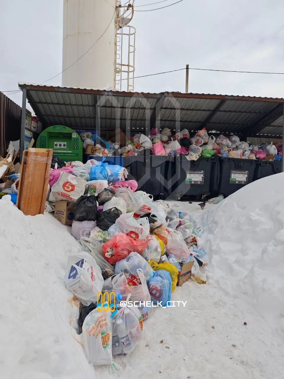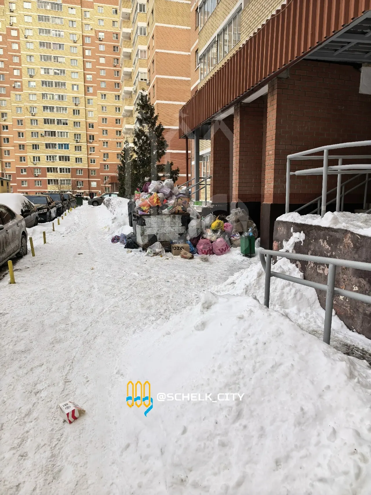Три дня не вывозят мусор у дома № 17 в мкр. Богородский из-за нечищеного снега 🫤