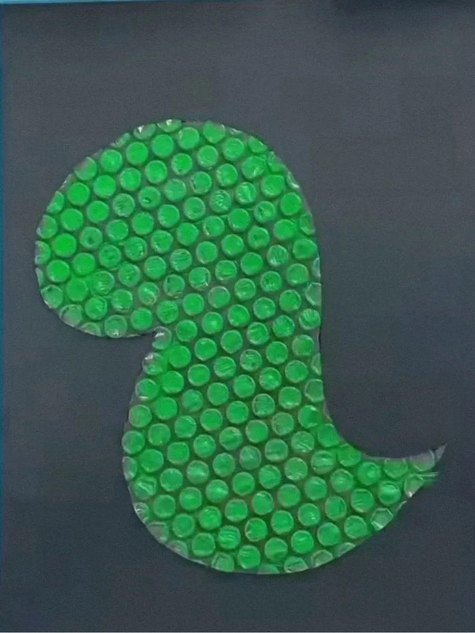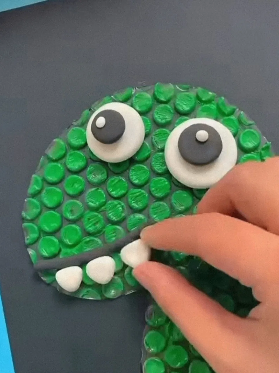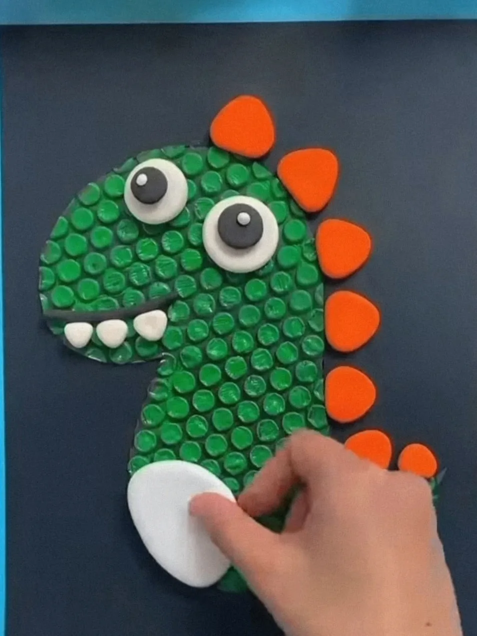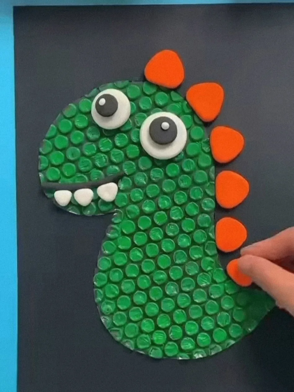 Динозавр из пластилина и воздушно-пузырчатой плёнки