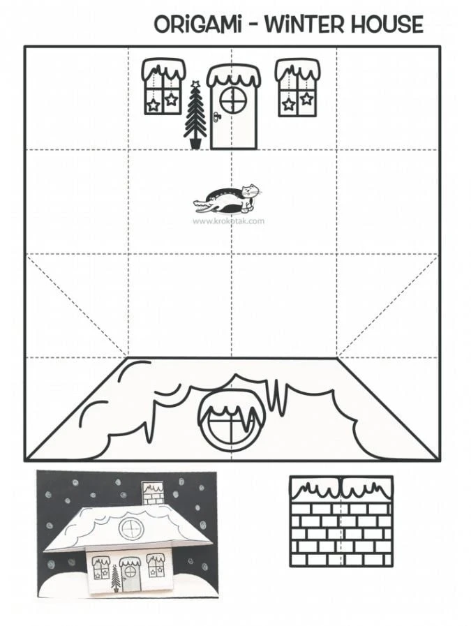 Зимний домик из бумаги