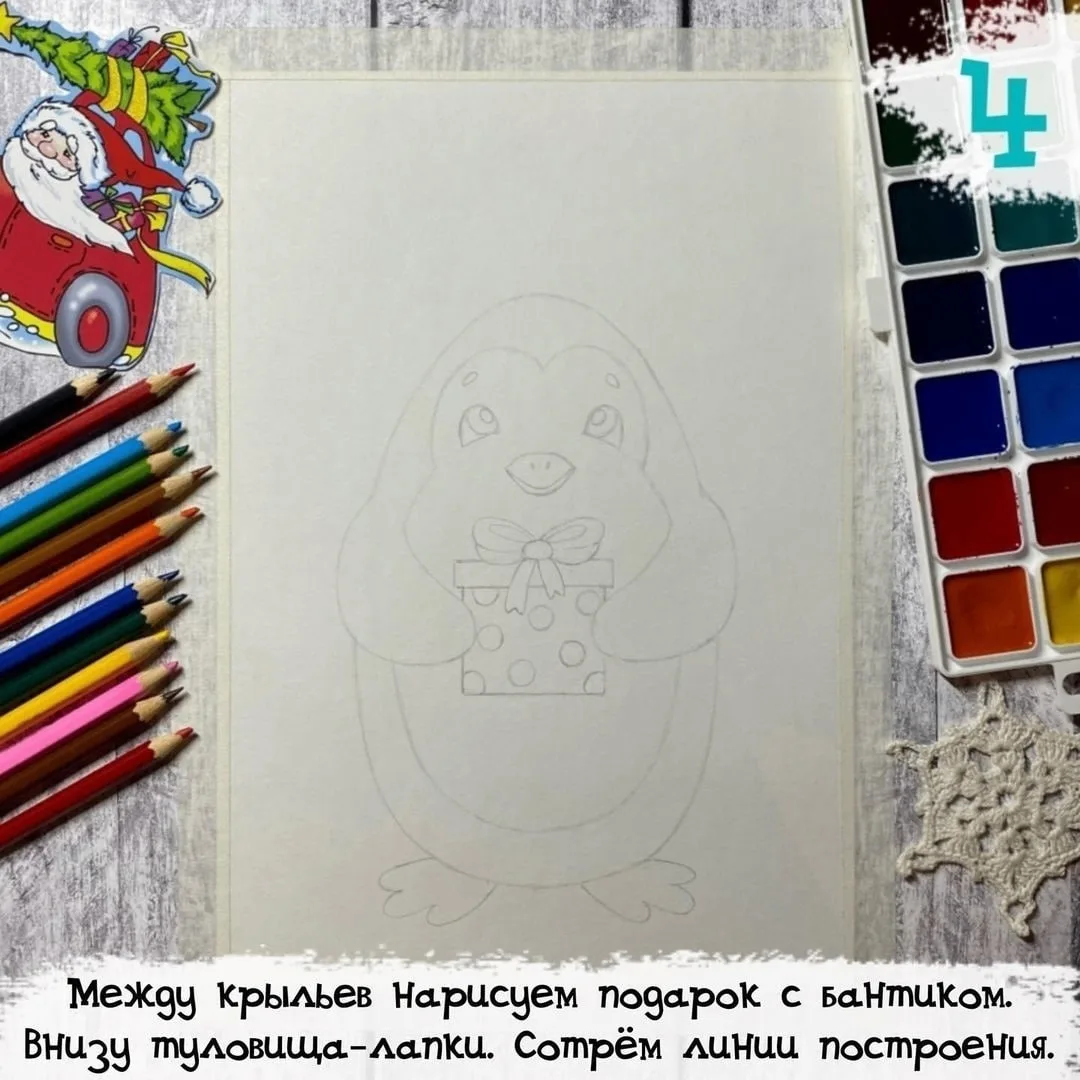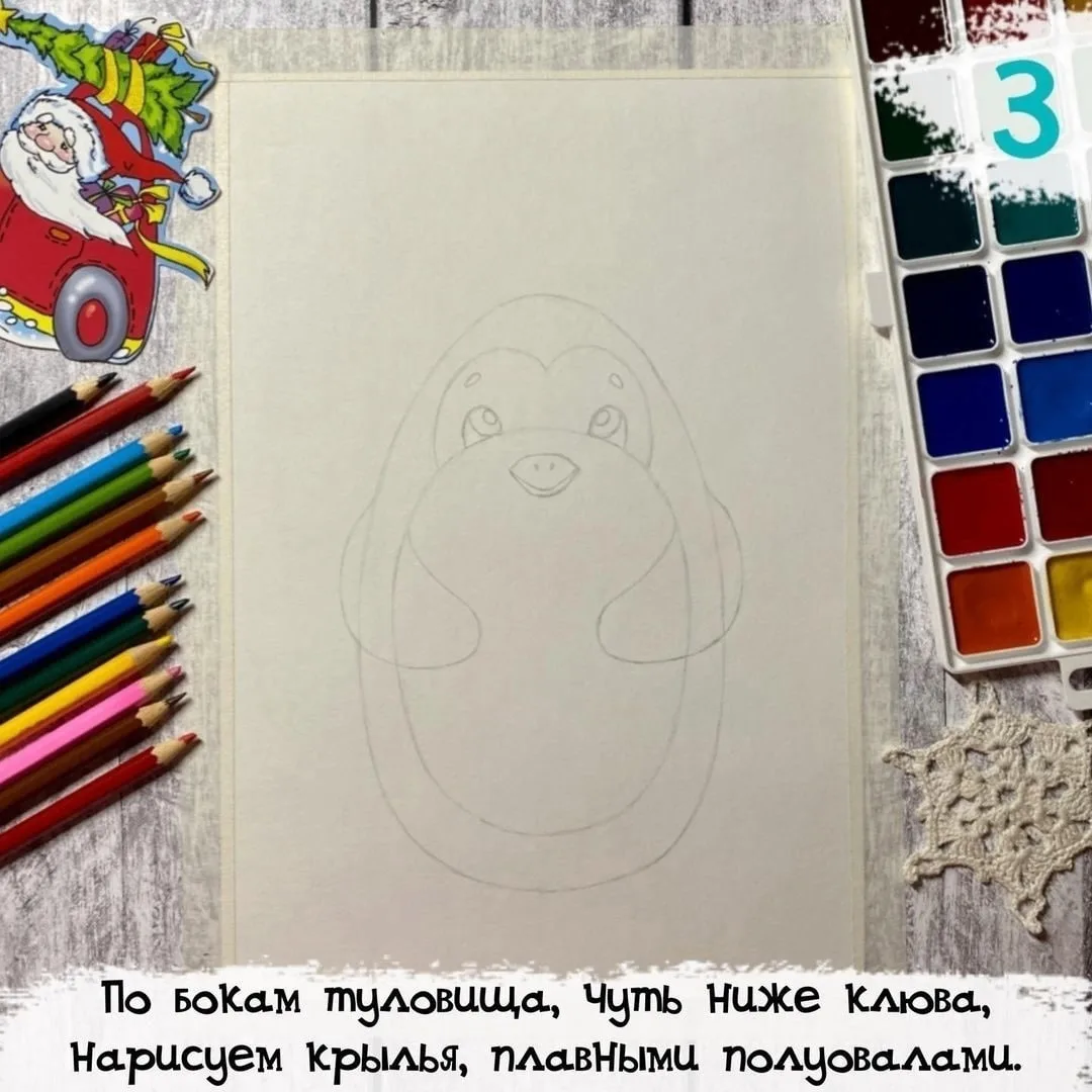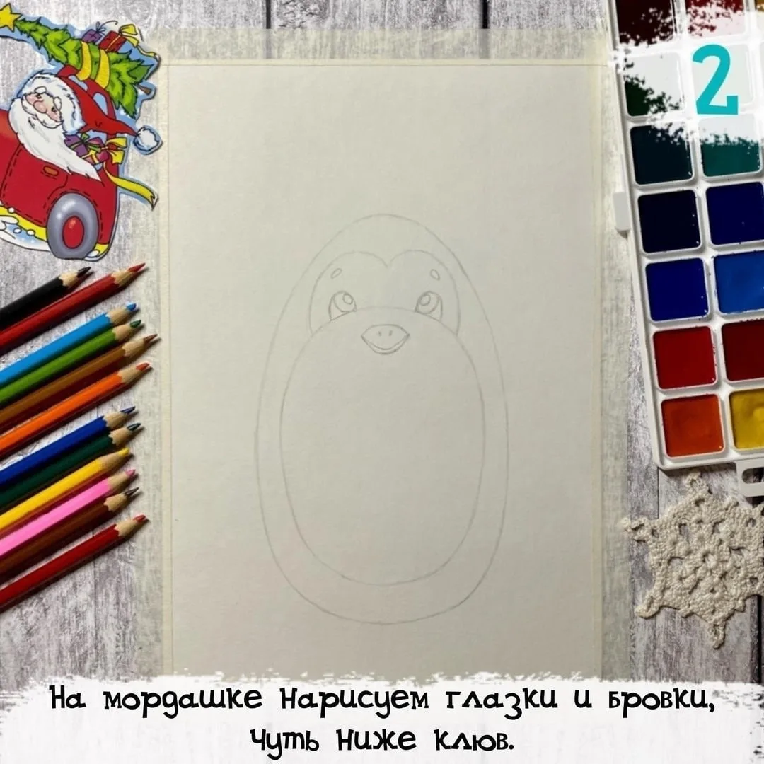Рисуем новогоднего пингвина