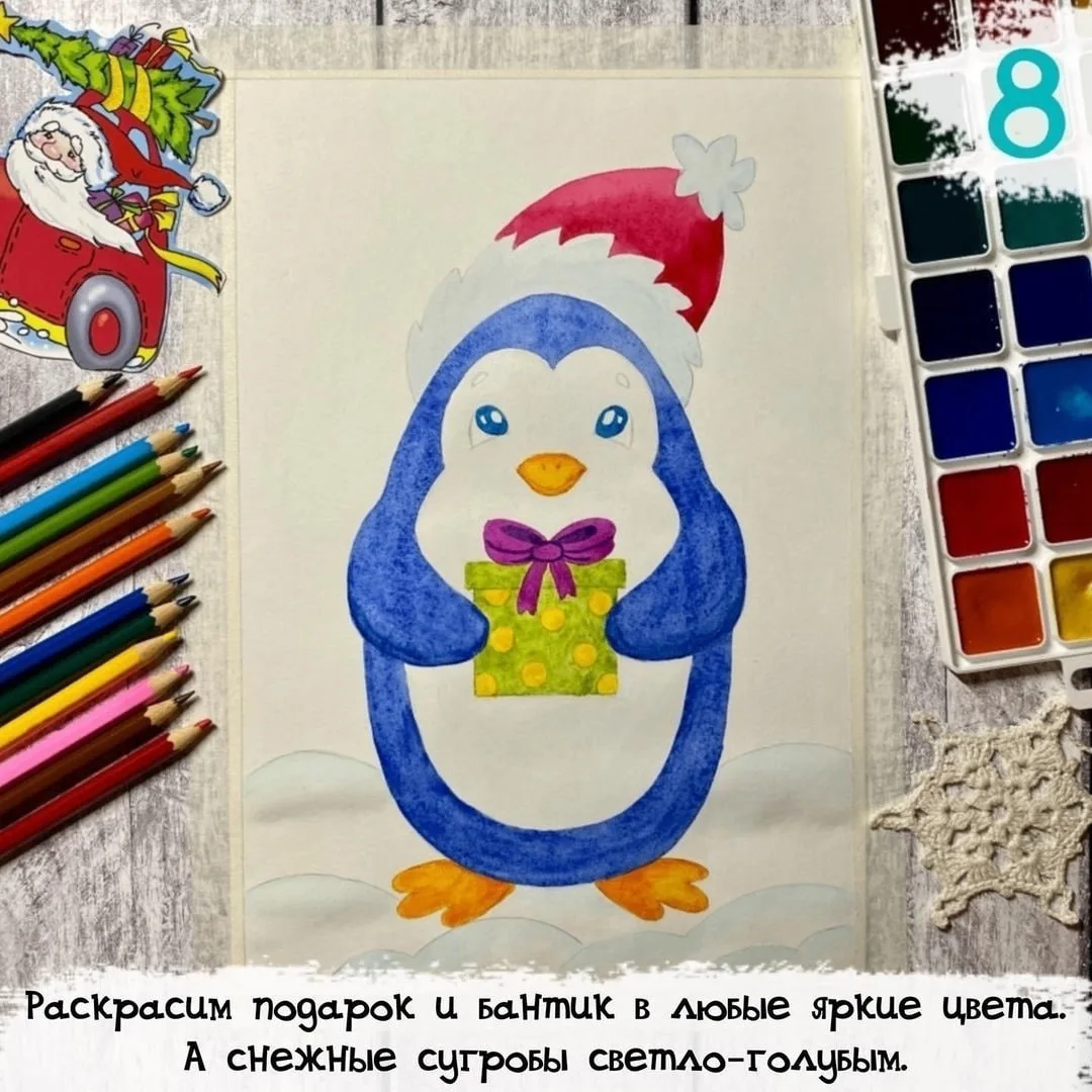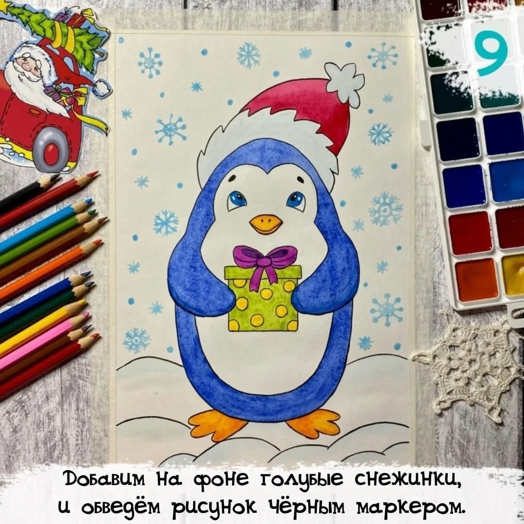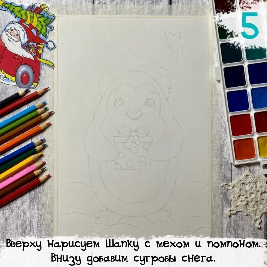 Рисуем новогоднего пингвина