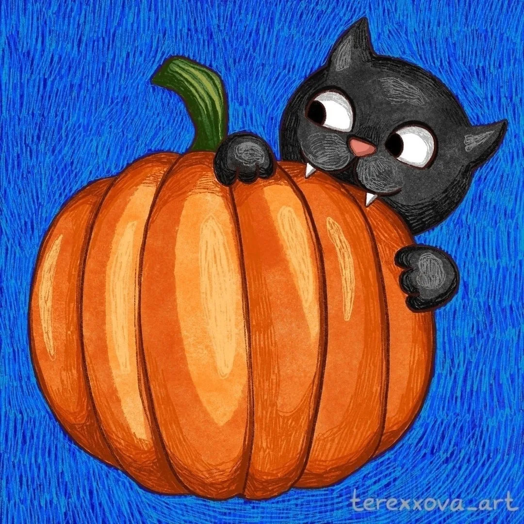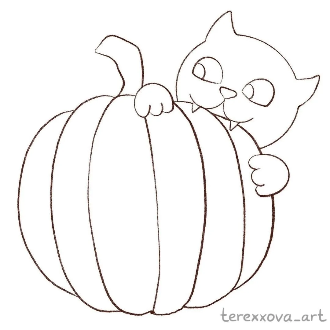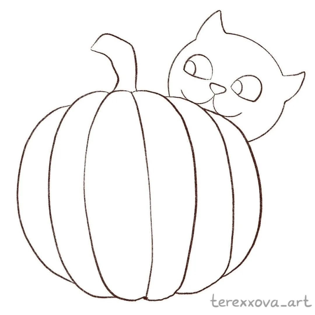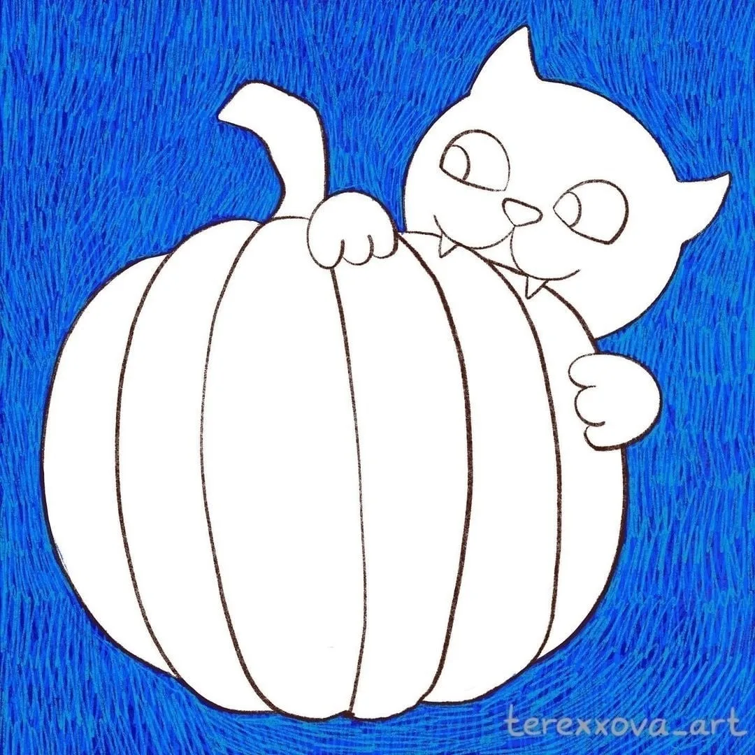 Осеннее творчество.Рисуем котика с тыквой
