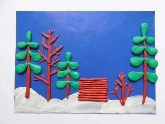 3имний пейзаж из пластилина
