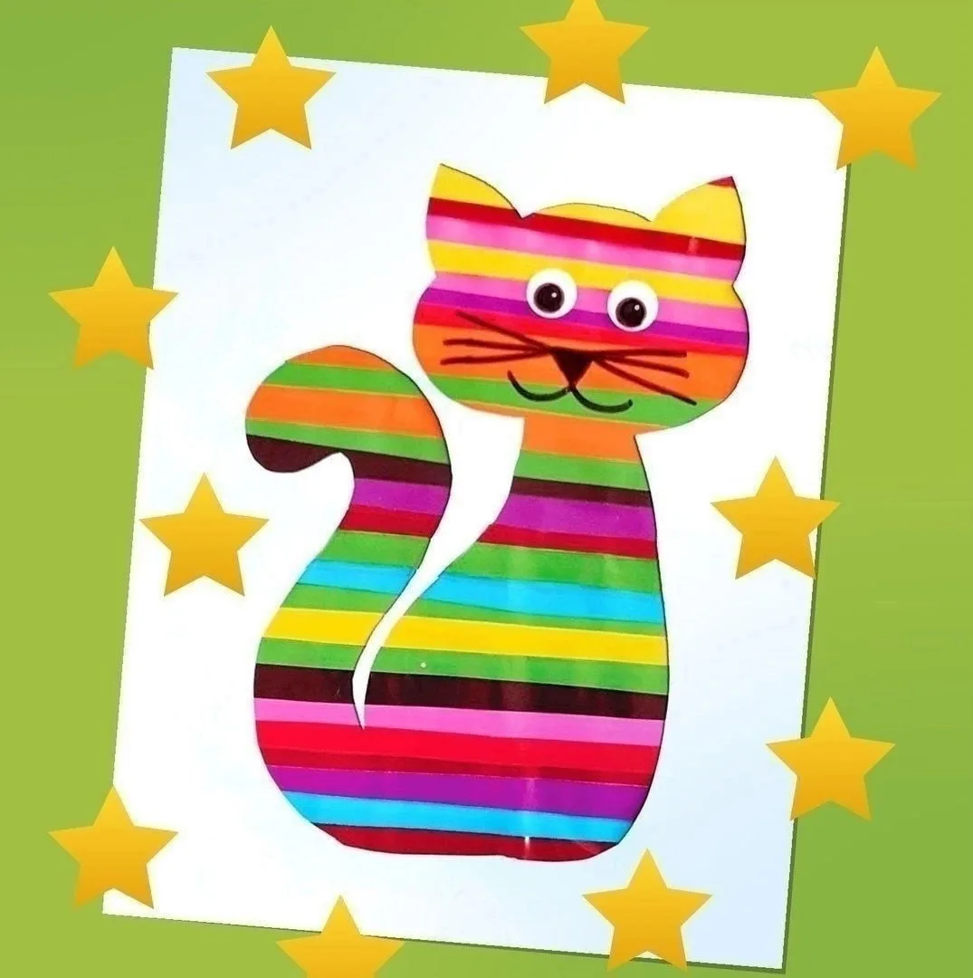 Аппликация из цветных бумажных полосок «котёнок»