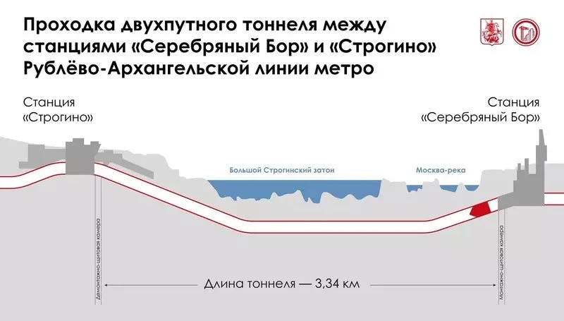 Сейчас идет строительство большого (диаметром 10 м) двухпутного тоннеля между станциями «Серебряный Бор» и «Строгино», который станет самым протяженным тоннелем московского метро, проходящим под водоемами.