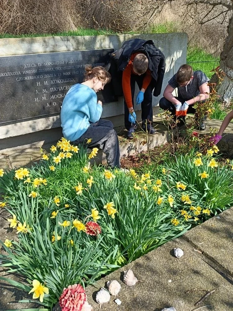 Школьники облагородили памятник Погибшим морякам