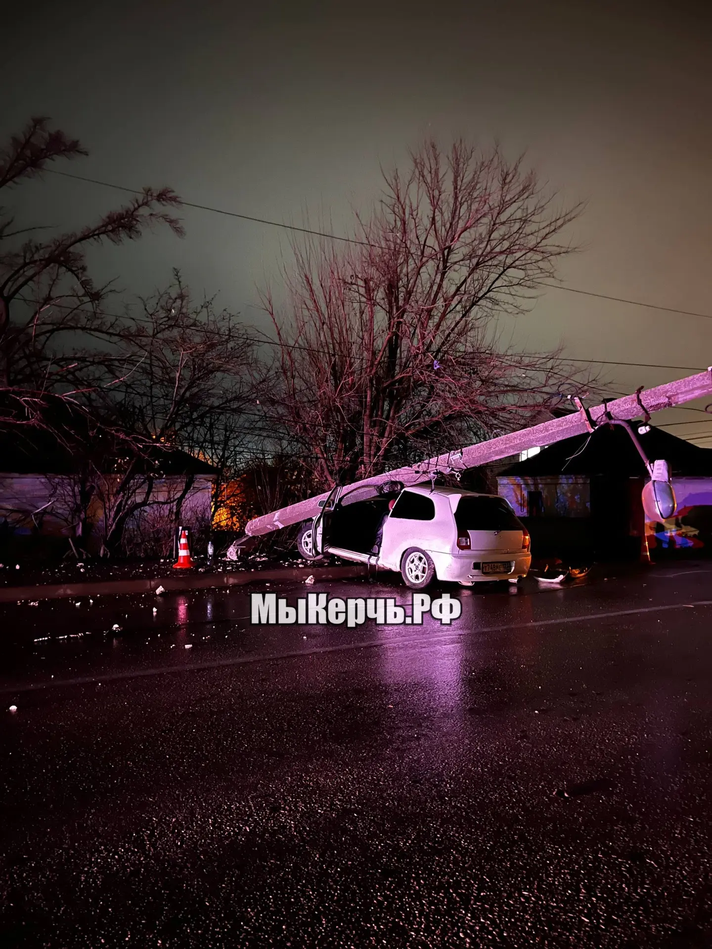 Как сообщает спецкорреспондент редакции МыКерчь.РФ с места происшествия, молодой водитель не справился с управлением на влажной дороге и машину занесло. Автомобиль «Mitsubishi Colt» не вошел в поворот и врезался в опору линии электропередач.