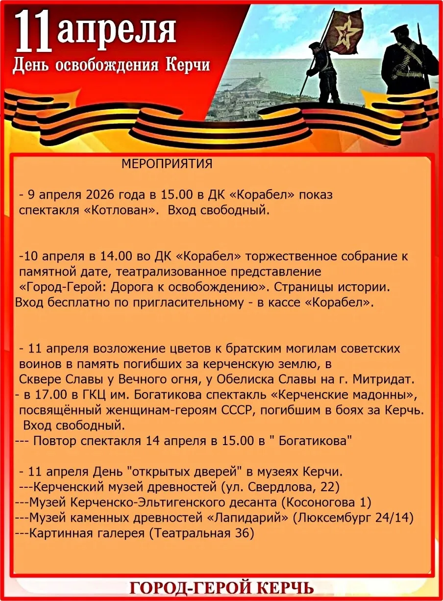 План мероприятий администрации Керчи, ДТ им. Пушкина, ВКИКМЗ.