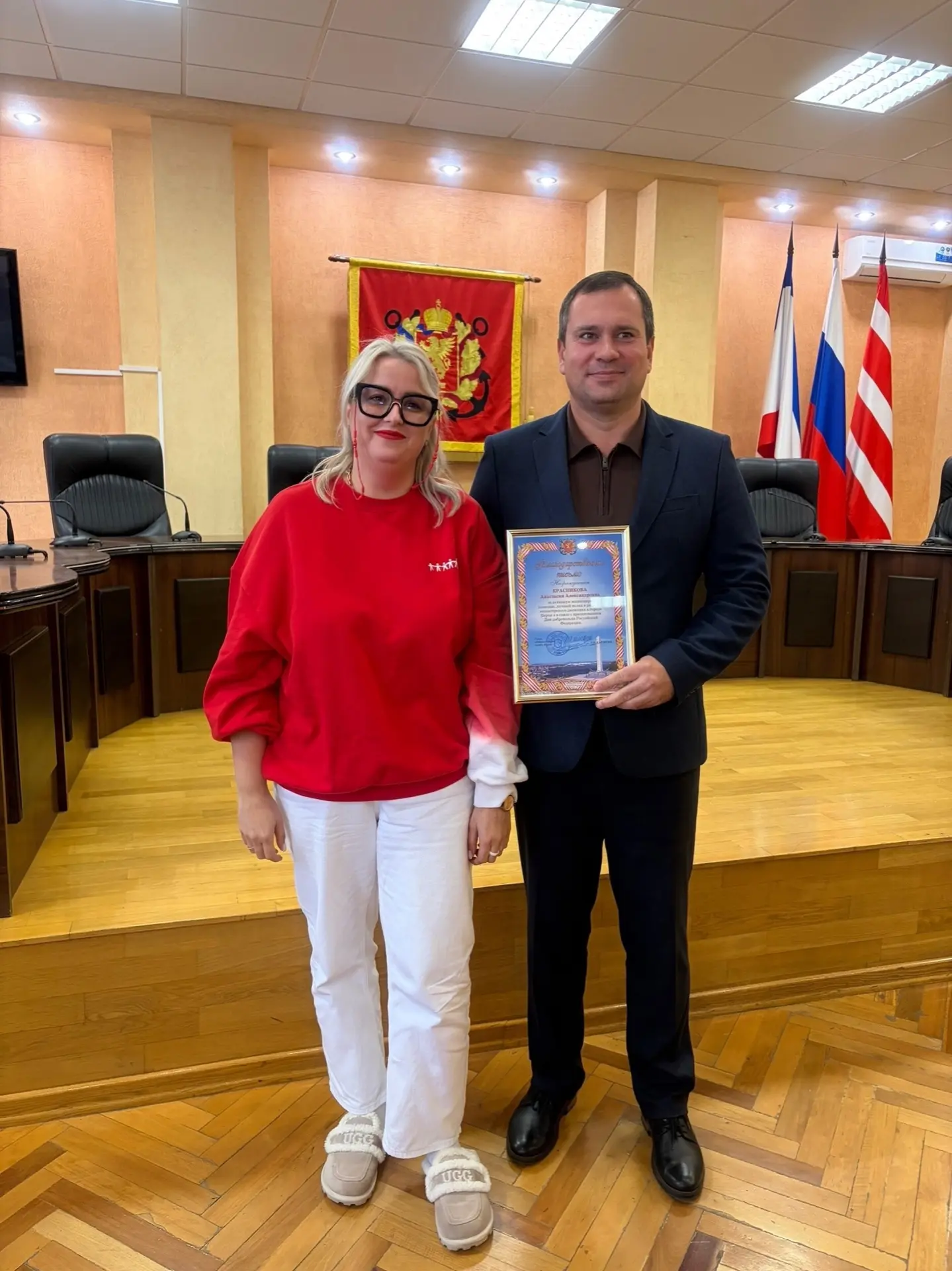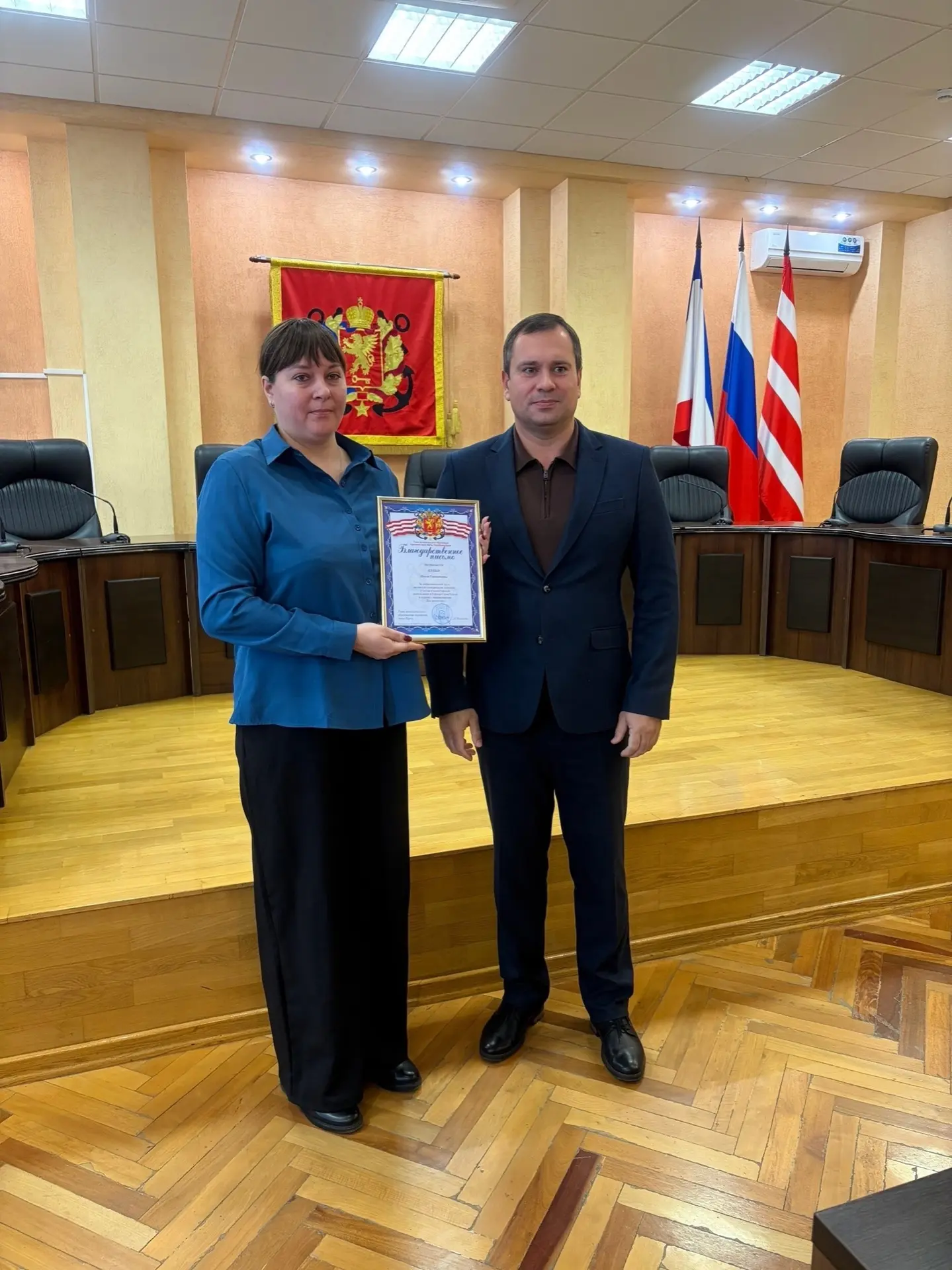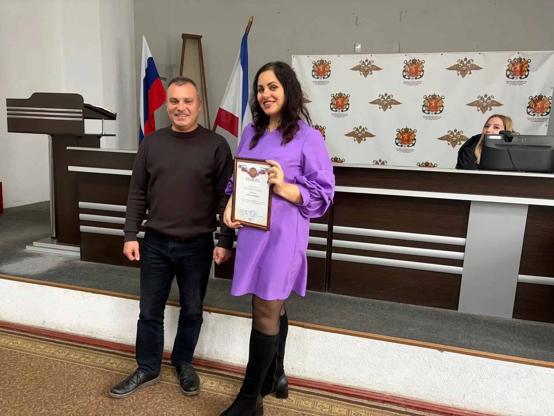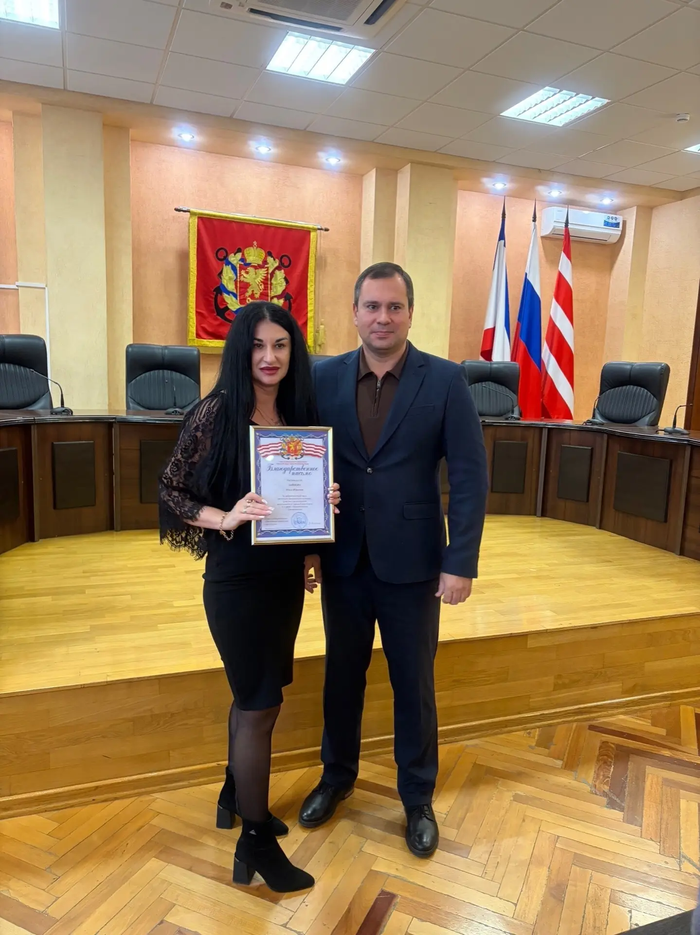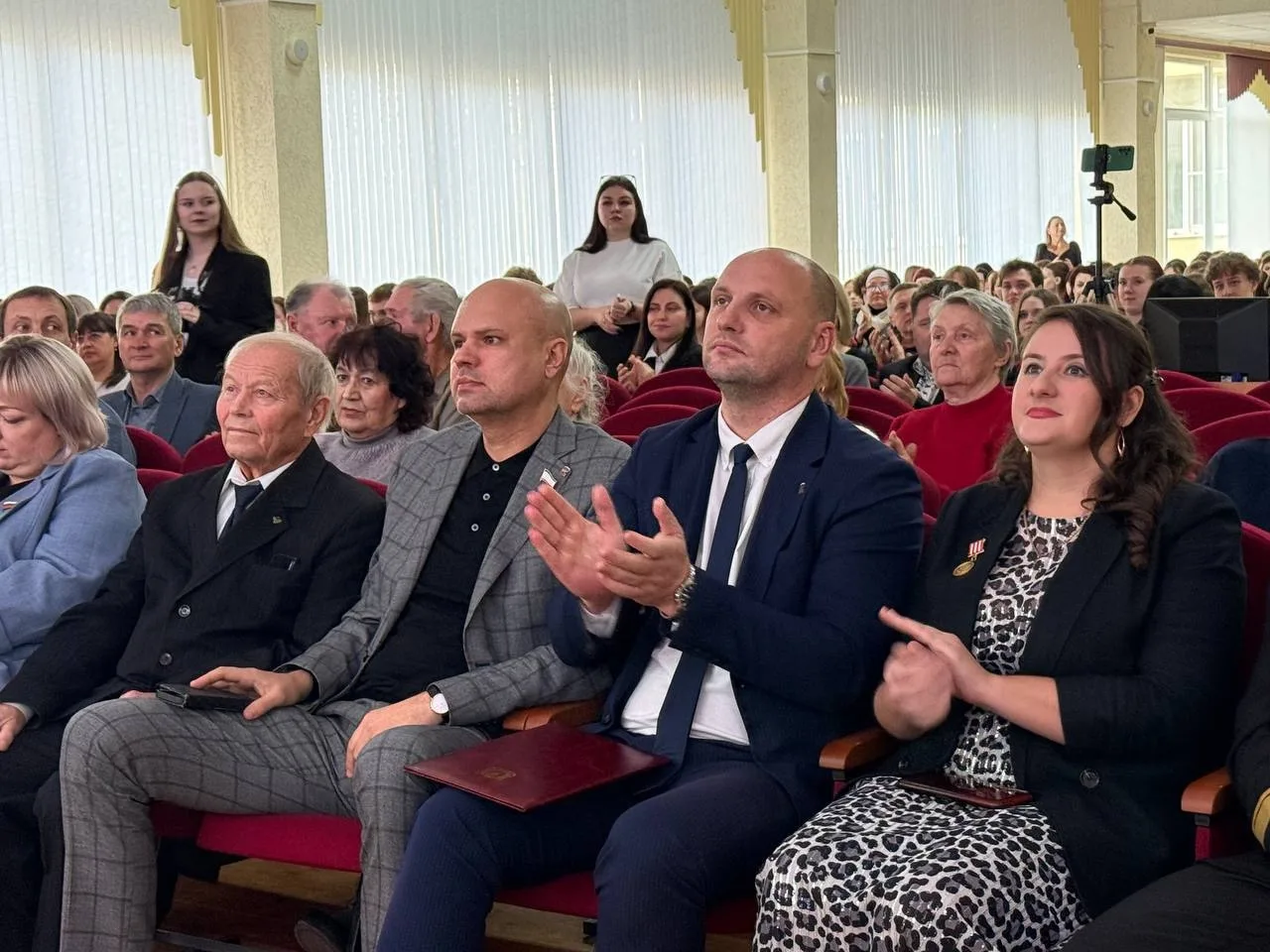 От имени Председателя Государственного Совета Республики Крым Владимира Константинова и Председателя Совета министров Республики Крым Юрия Гоцанюка, Депутат Государственного Совета Республики Крым Олег Кришталь передал коллективу колледжа поздравления.