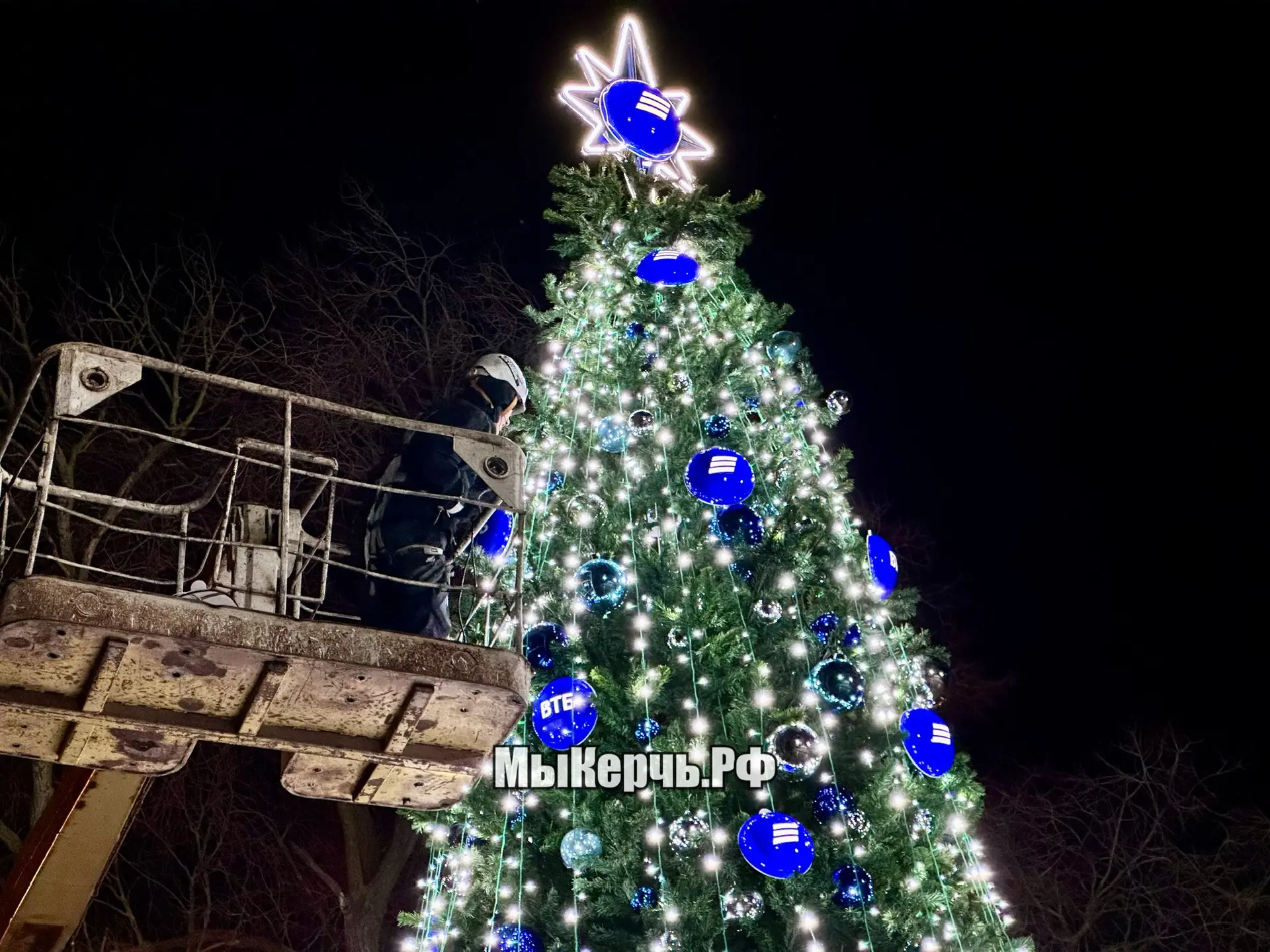 Всего на ёлке около 70 светящихся полусфер и еще примерно столько же шаров. Сейчас бригада завершает работу над украшением и подключением иллюминации. Отметим, что в Керчи такая спонсорская ёлочка будет одна.