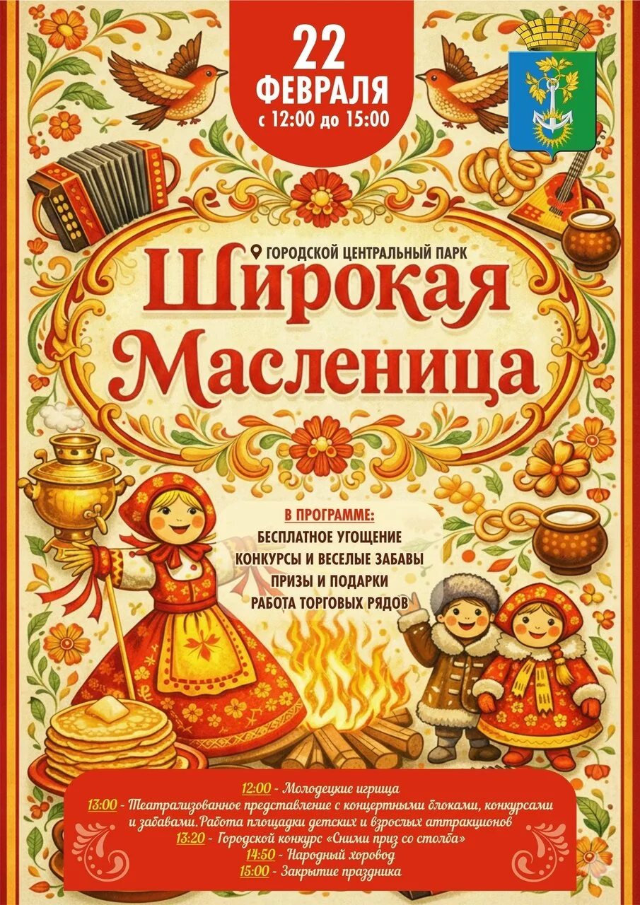 Друзья! 🥞22 февраля приглашаем вас в Центральный парк на праздник Масленицы. ☀Приходите всей семьёй провожать зиму и встречать весну!