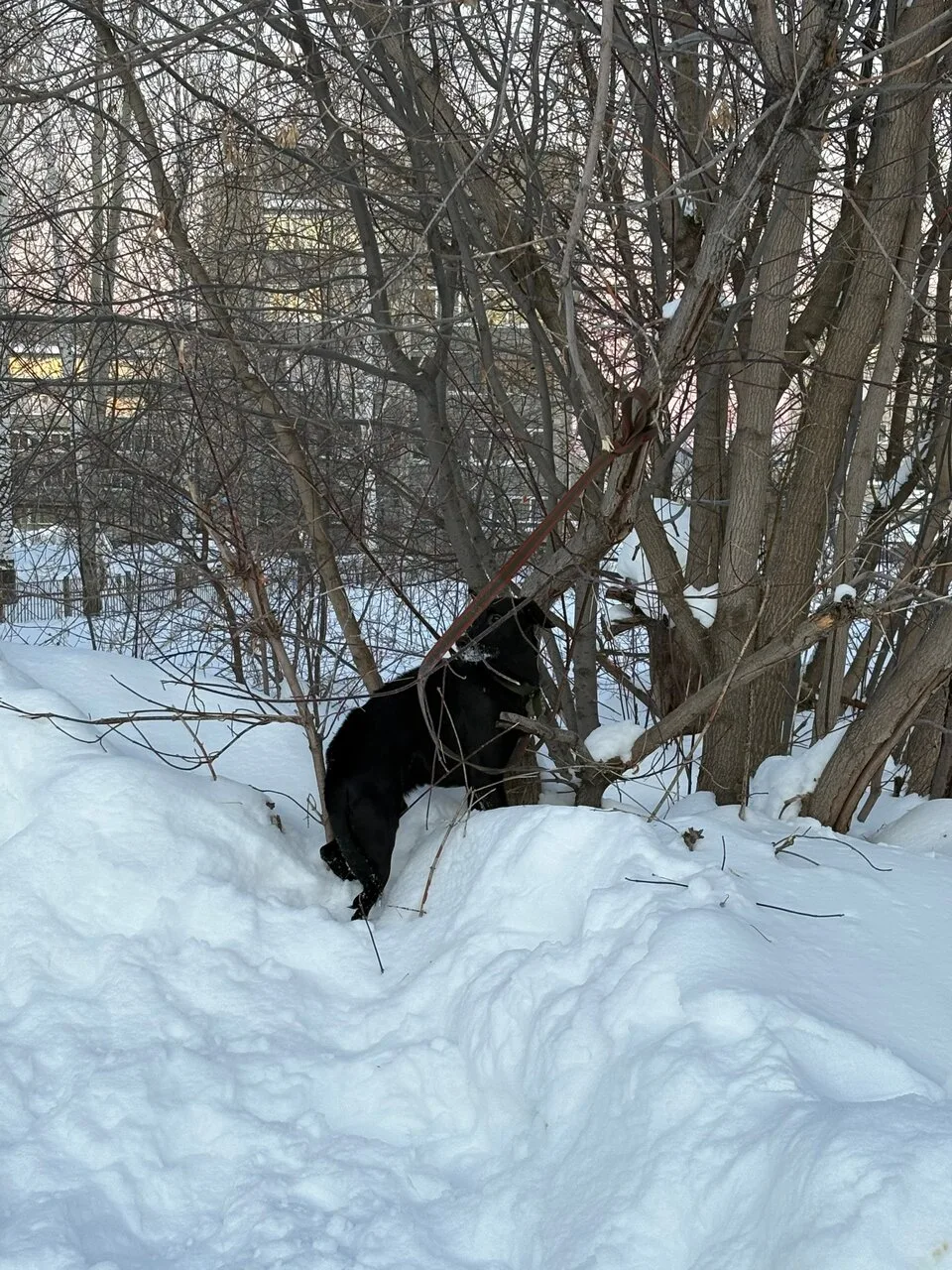 Кто привязал собаку к дереву!!!! вчера шла на работу утром, она сидела, сегодня та же картина!!!!попыталась подойти, она не подпускает, лает и в то же время боится, прячется среди сухого дерева! Очень замерзла, трясется. Находится на минватном, возле садика Чайка, на выходе.