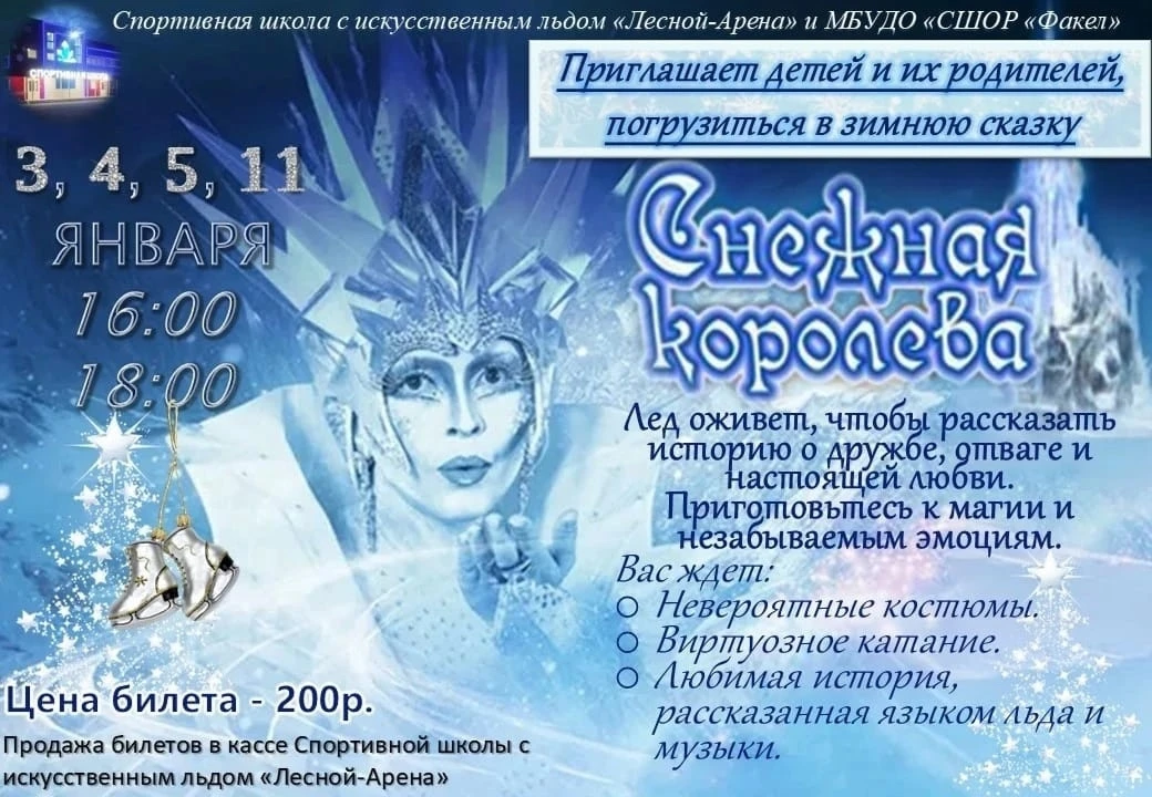 Лесной-Арена приглашает жителей Лесного и Нижней Туры посетить спектакль на льду "Снежная королева"!