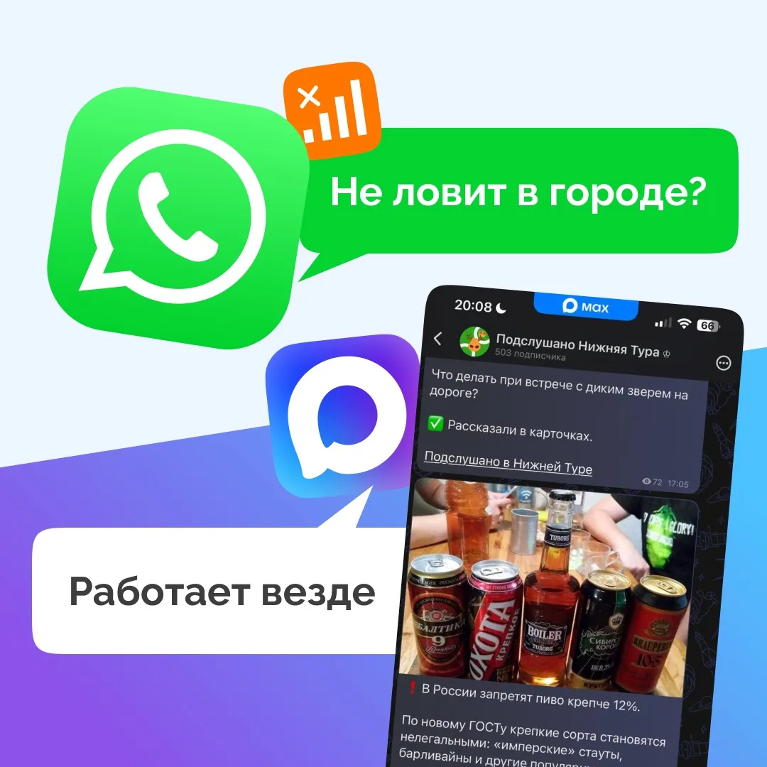 📌 Возможно, скоро WhatsApp и Telegram столкнутся с ограничениями. Чтобы оставаться на связи, мы подготовили решение — теперь ВСЕ местные новости собраны на нашей новой площадке в мессенджере MAX!