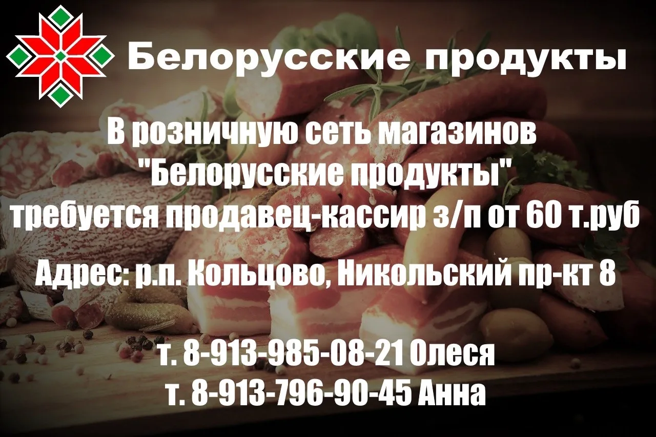 В розничную сеть магазинов "Белорусские продукты" требуется продавец-кассир з/п от 60 т. руб