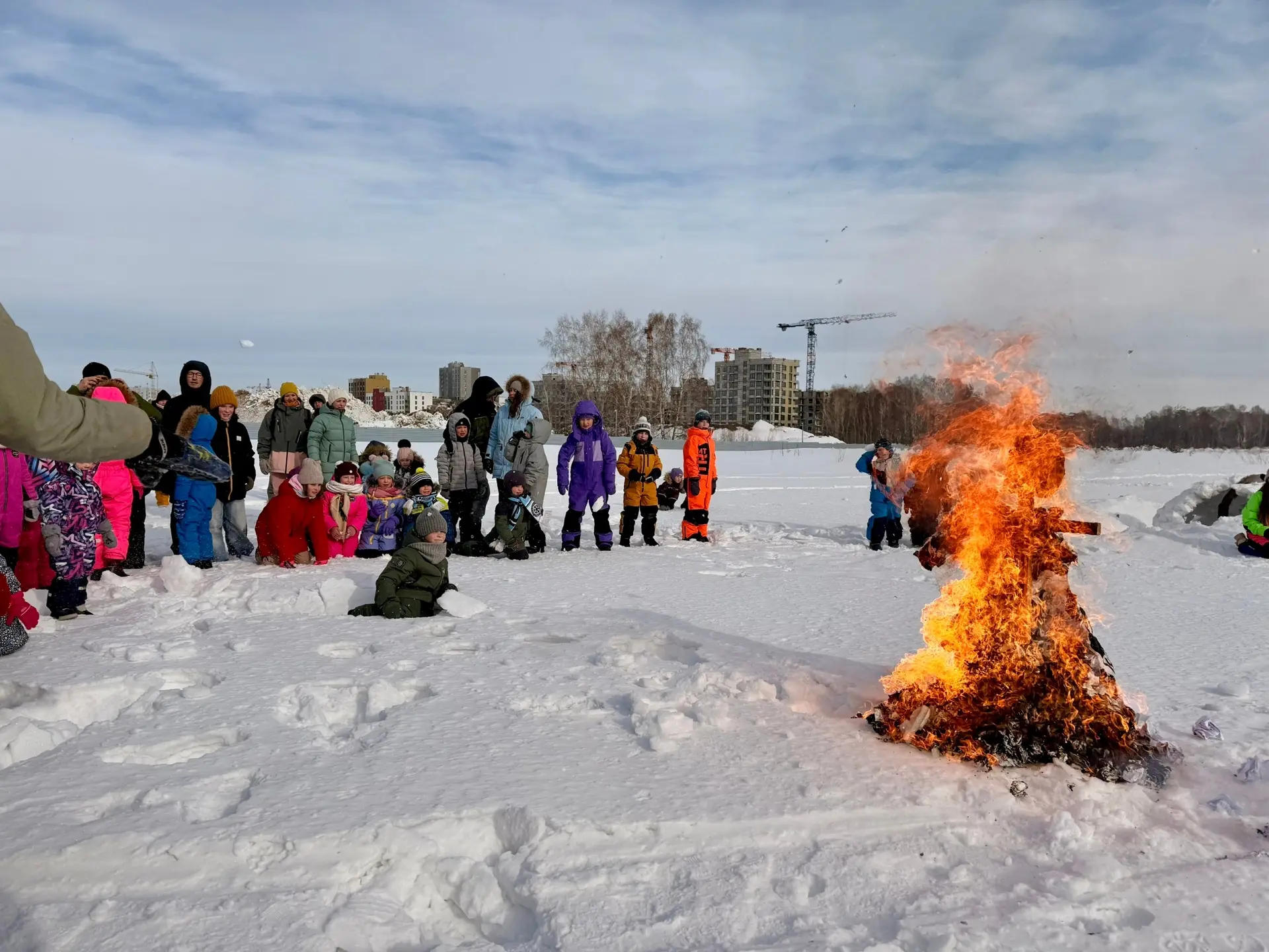 Кульминацией стал старинный обряд — сожжение масленичного чучела за пределами ЖК.