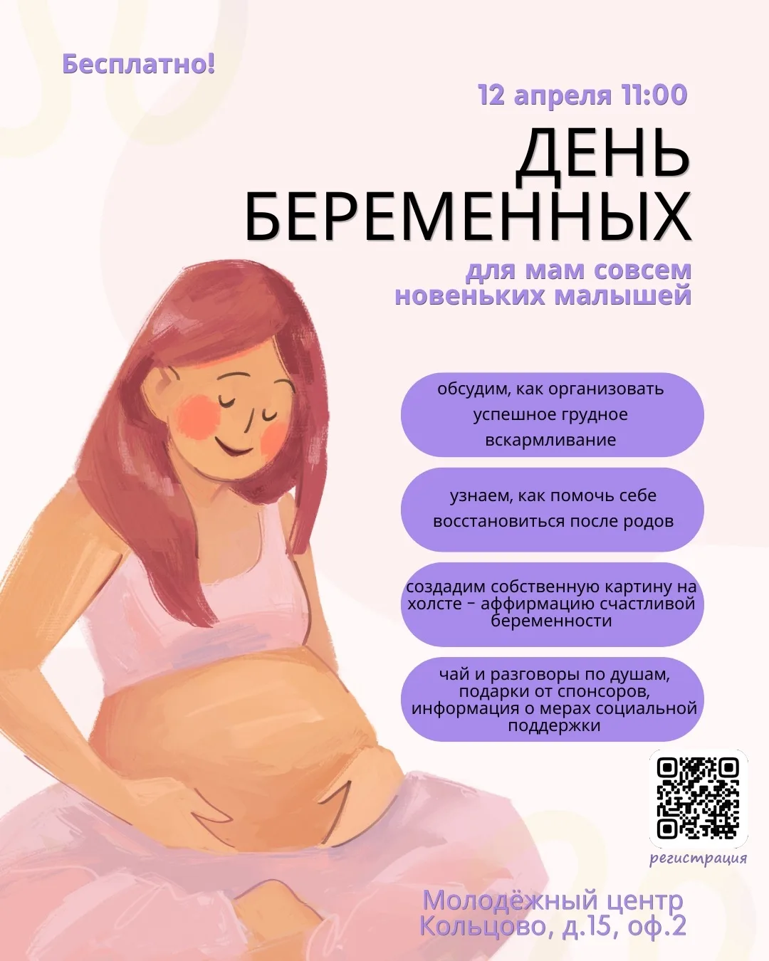 Молодежный центр Кольцово приглашает всех прекрасных дам в ожидании малыша присоединиться к празднику в выходной день: 📆 воскресенье, 12 апреля, с 11:00