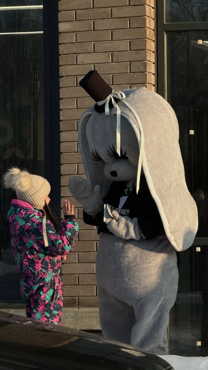 Приятно наблюдать, как с ним обнимаются дети и улыбаются взрослые, зайчик что-то раздает ☺️