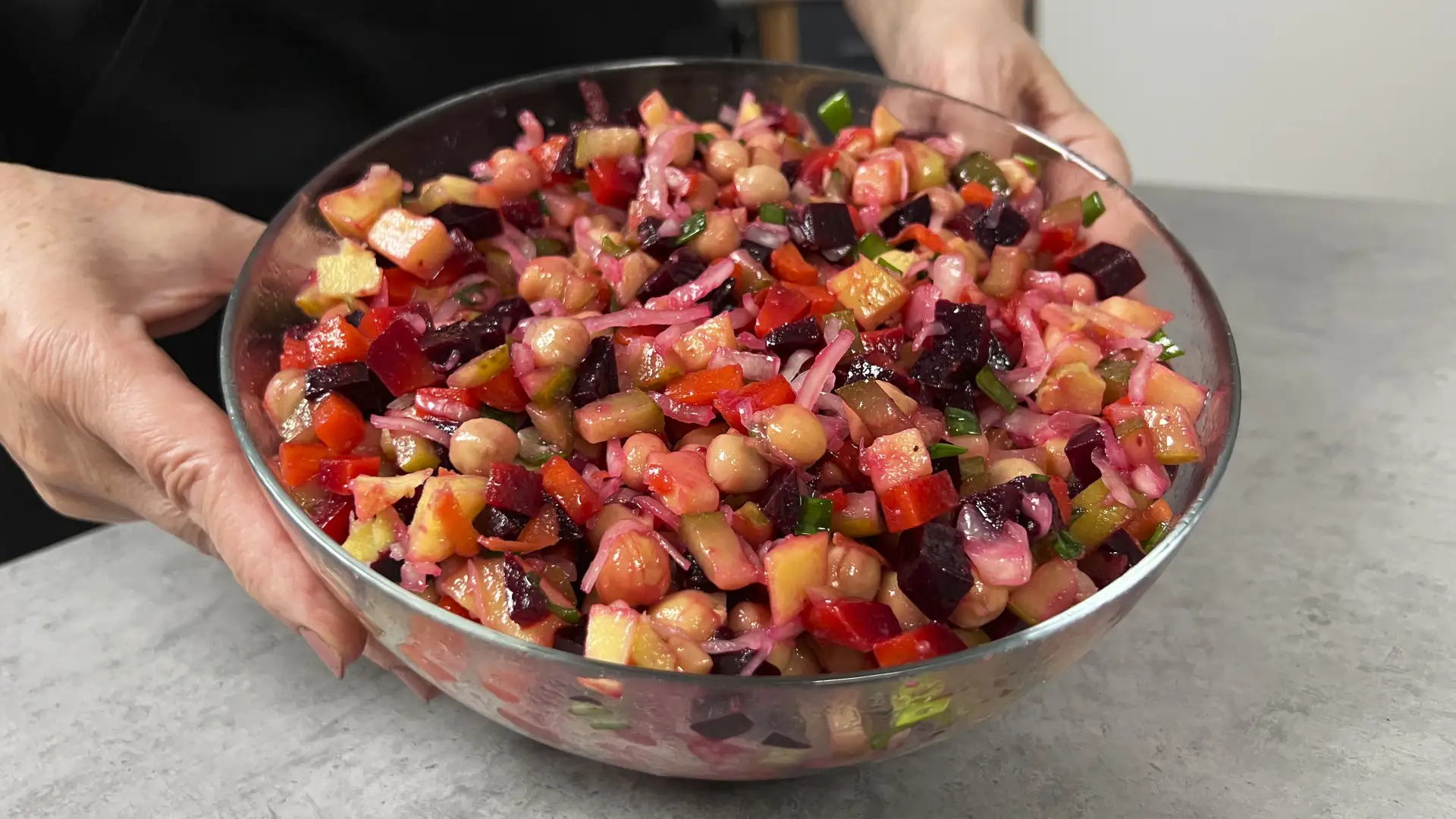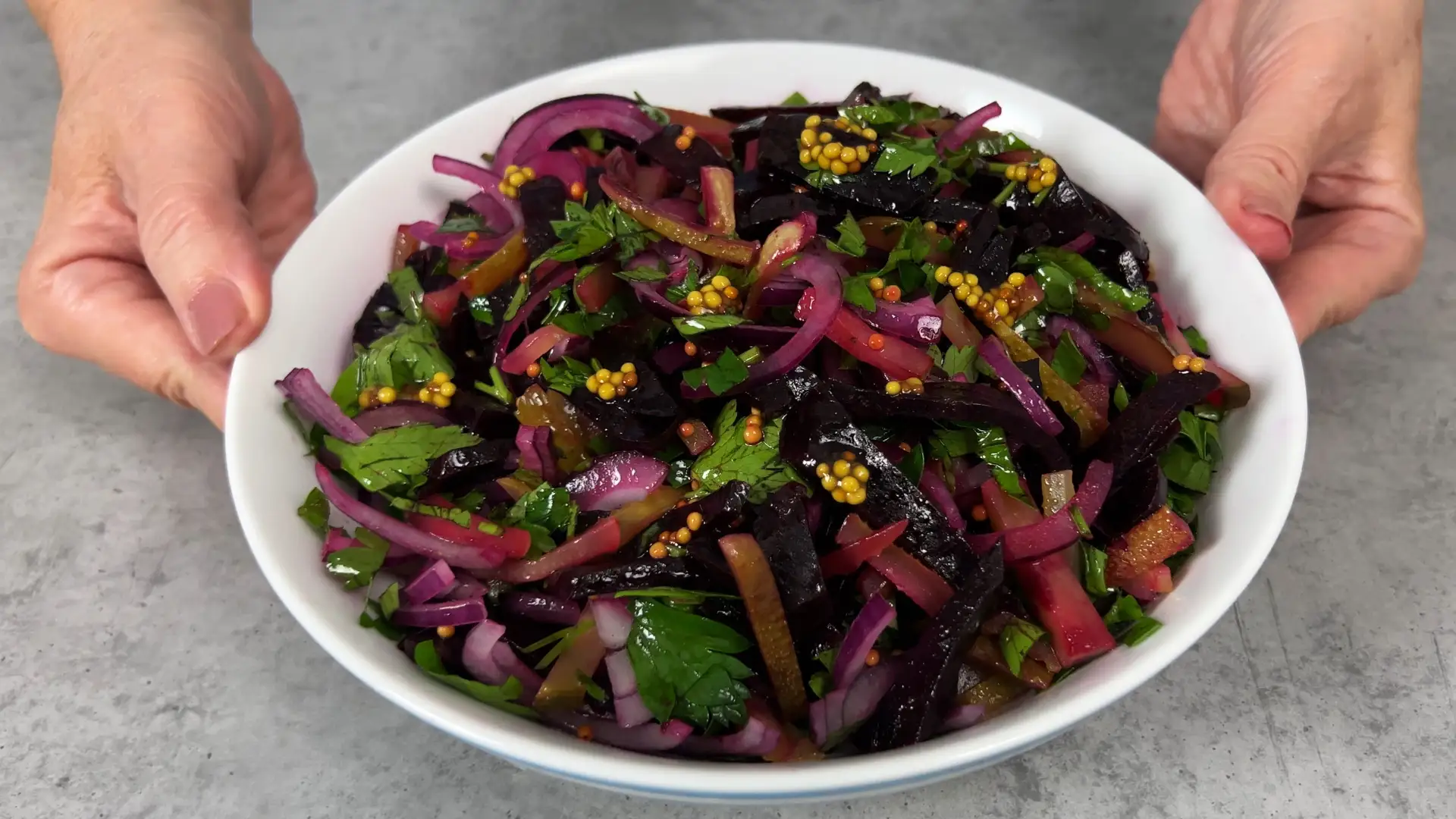 Сегодня делюсь рецептом очень простого, сытного, но при этом невероятно свежего салата! В нем нет ни капли майонеза — вместо него мы сделаем потрясающую легкую заправку с зернистой горчицей.