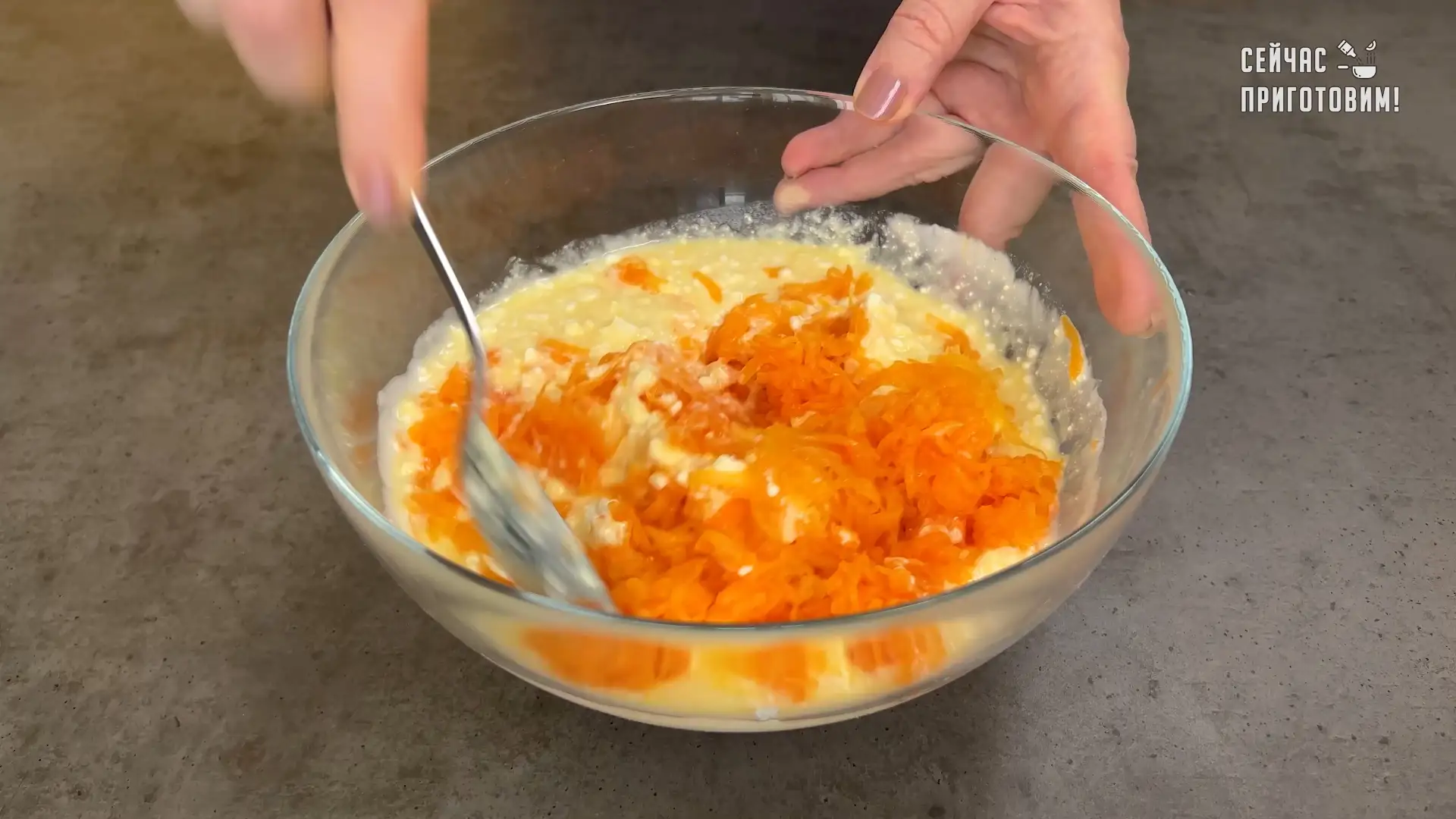 Добавляем натертую на терке тыкву.