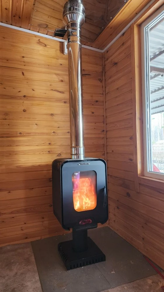 Хватить её должно кв на 120, у нас же домик около 30 кв м, поэтому рассчитываем что будет тепло, даже если периодически держать дверь открытой