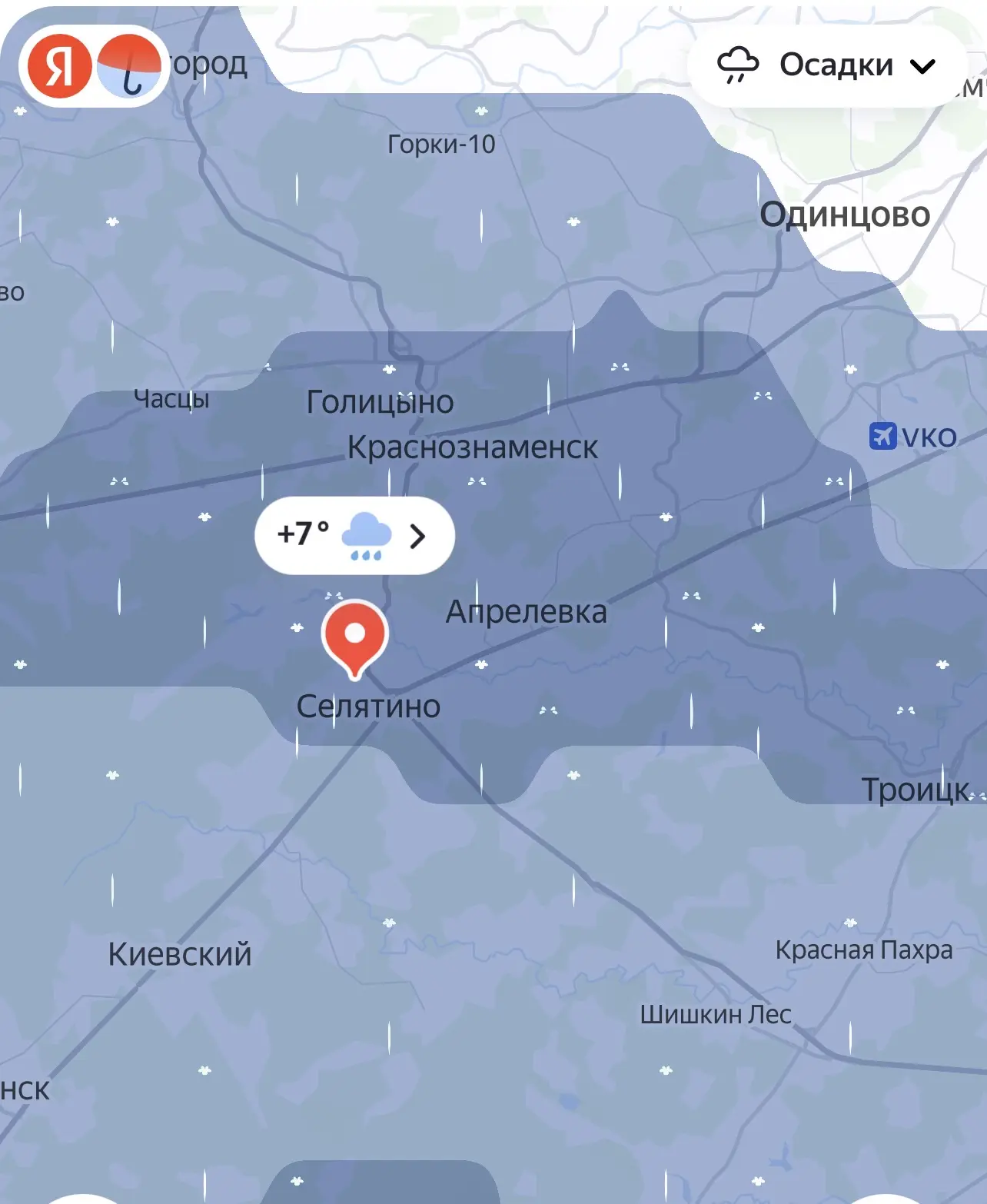 Селятино. Дожди ожидаются в Москве и Московской области в течение недели.