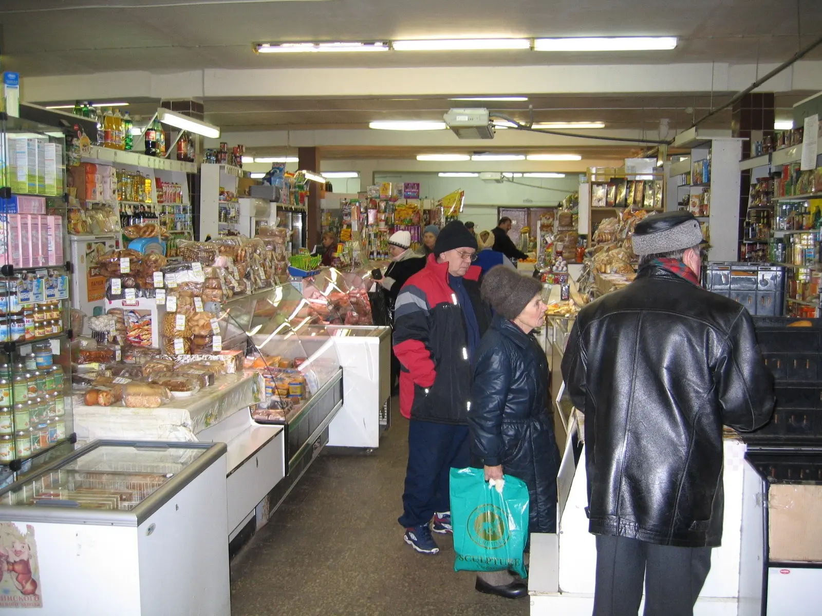 как продавала тётя Валя хлеб, как рассказали родители мои, она работала в библиотеке раньше. Ещё была тётя Света, которая продавала колбасы, это следующий прилавок был за табачными изделиями справа (?), вот мне казалось, что перед рыбным прилавком был ещё один мясной (с колбасными изделиями) прилавок.