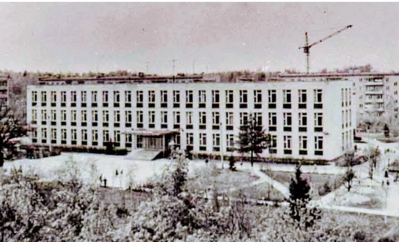 Приблизительно 1965 год. Улица Клубная (теперь так называется). Забор 1-й школы (единственной в то время). За углом на право ещё нет дороги в сторону универмага. Ещё жива деревня Крутилово. На том месте построили дом 28 и кафе Дубок.