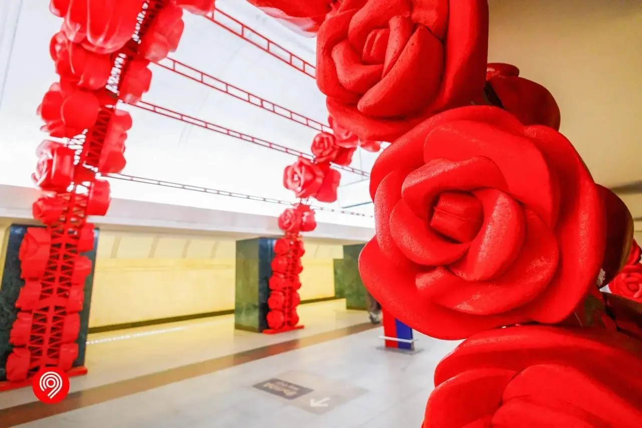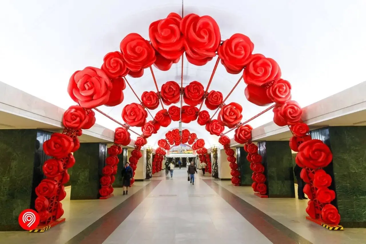 🌹 Гигантские розы украсили Москва станцию метро Трубная к 8 Марта.