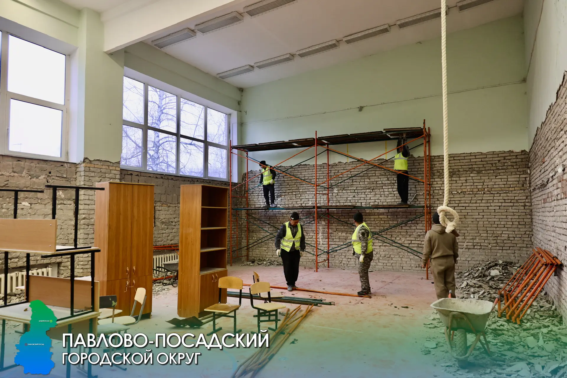 Здесь уже начались работы по демонтажу во внутренних помещениях в рамках народной программы партии «Единая Россия». Напомню, что здание было построено еще в 70‑х годах. Сейчас в школе учатся 243 ребенка.