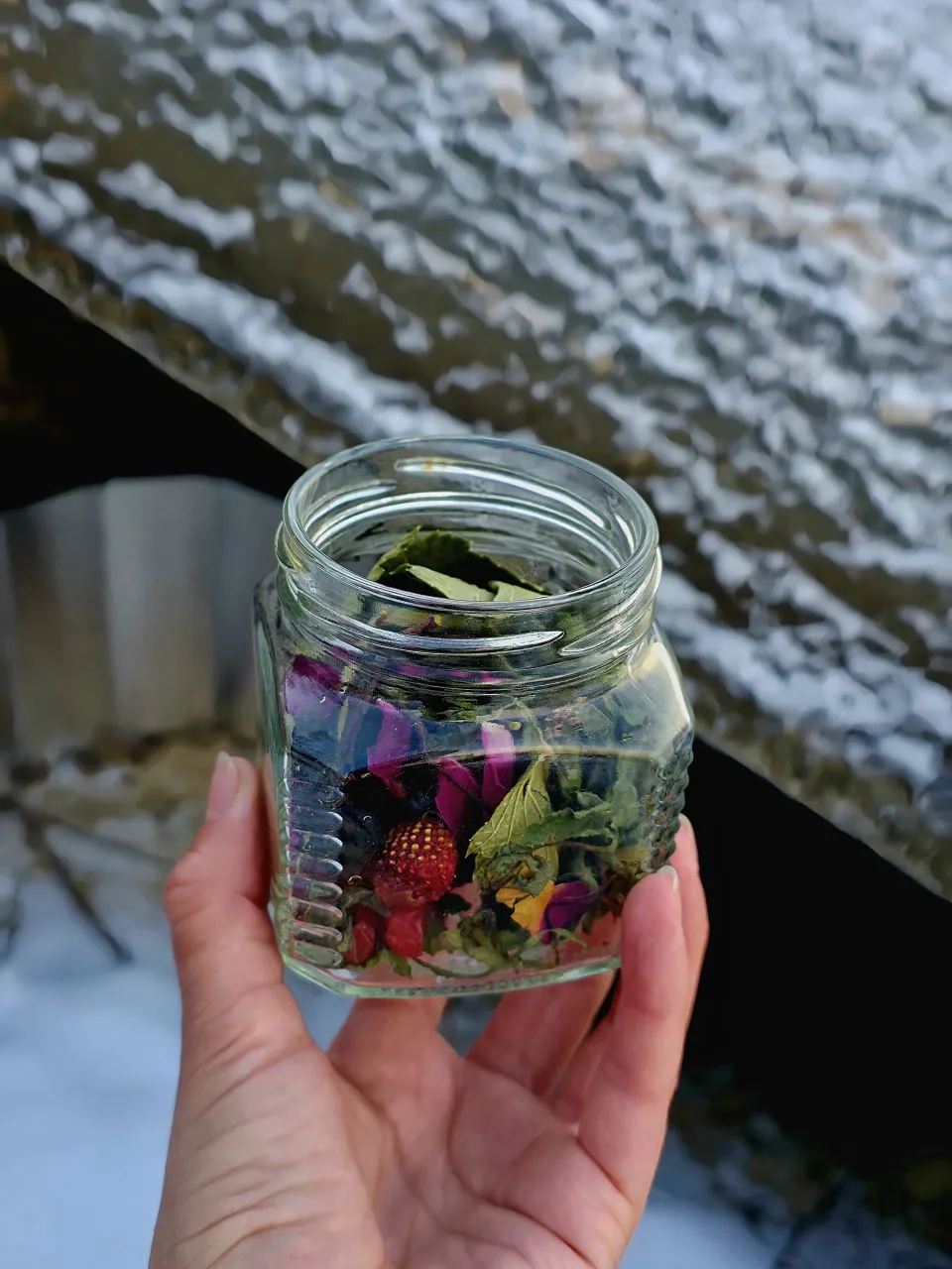 Маршрут рандомный по родным пенатам. Чай с ингридиентами собранными собственноручно: мята, мелиса, листья смородины, земляника, лепестки роз, клюква и в пути ещё нашла чёрную рябину.☕️😋 И конечно же конфеты с говорящим названием «Прохлада».🍬😌