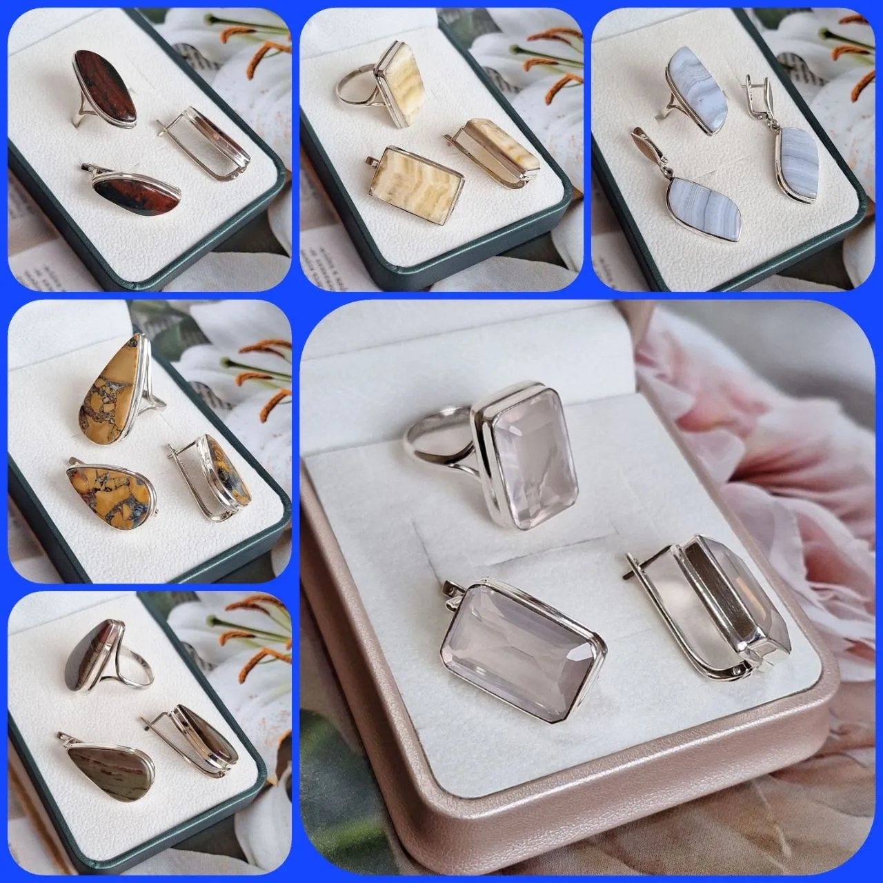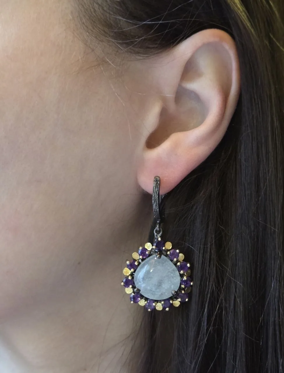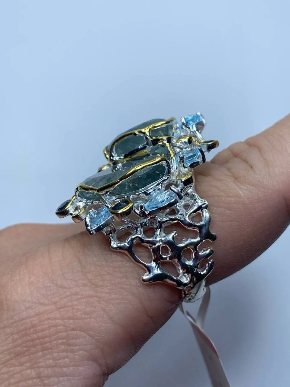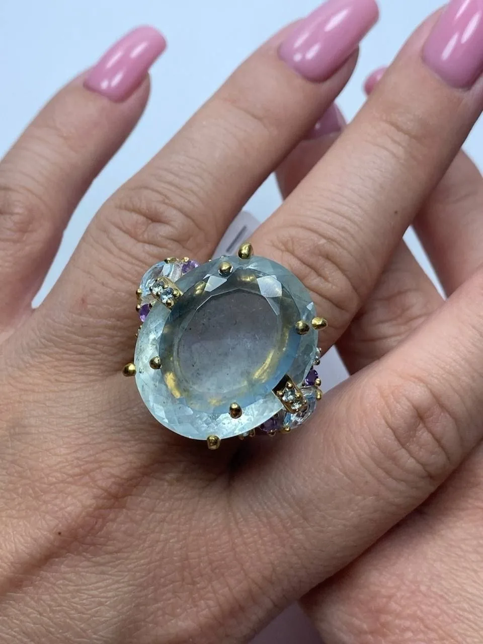Вашему вниманию шикарный гарнитур с аквамаринами в ручной резной огранке, голубыми топазами и аметистами!