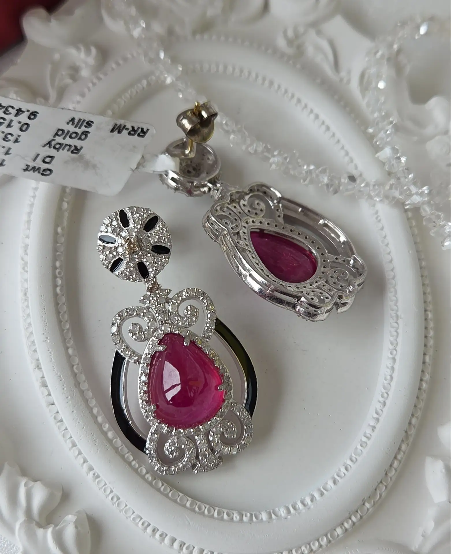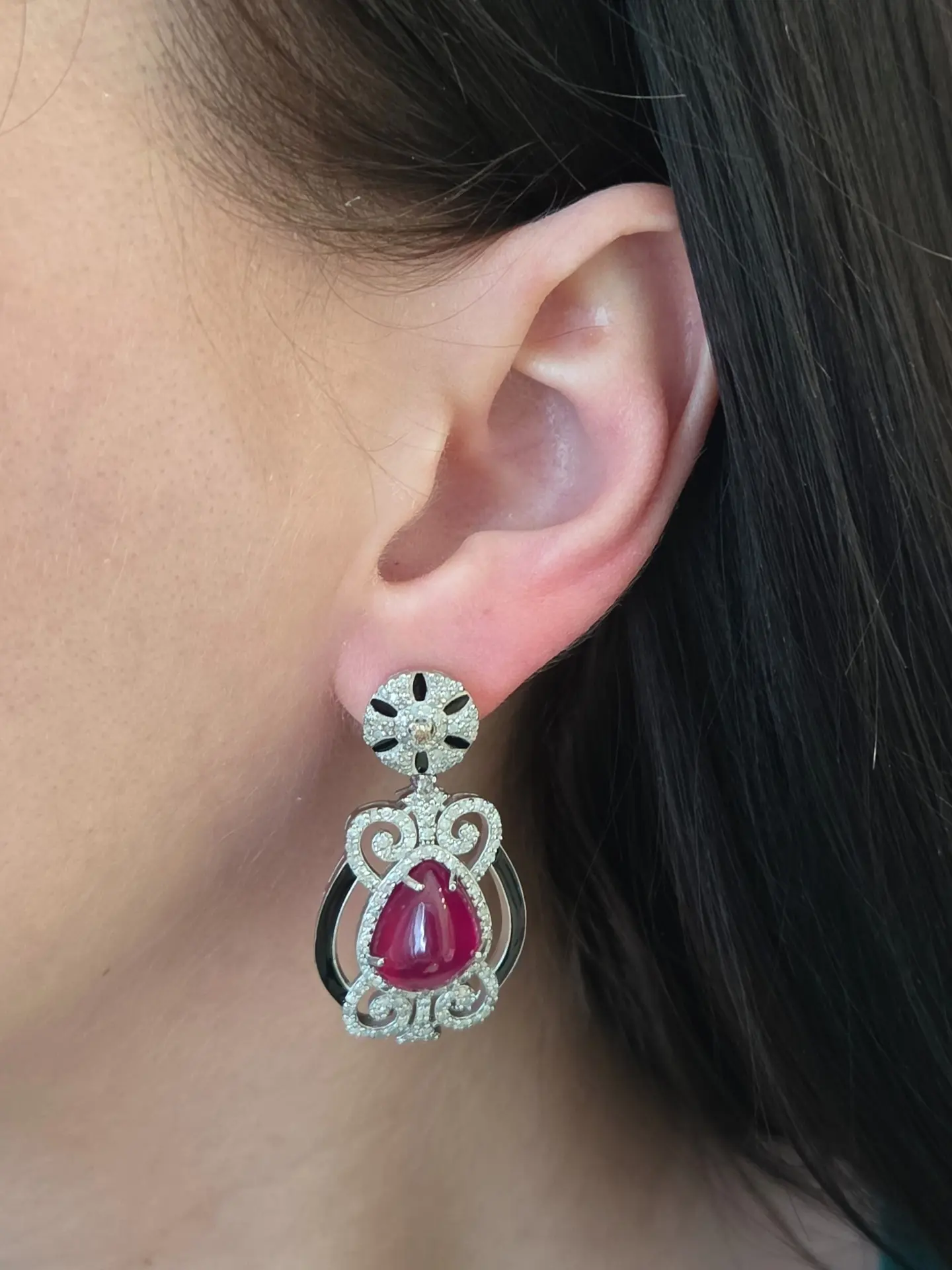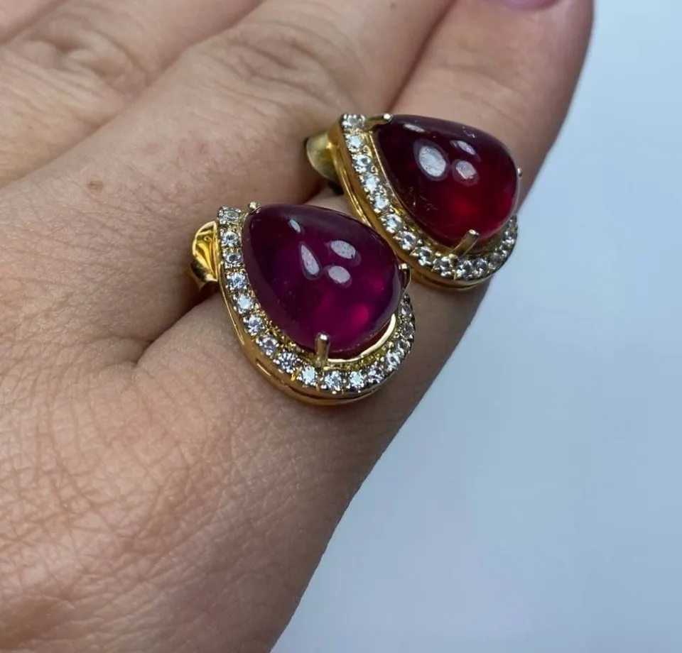 Ослепительно красивые серьги с кабошонами рубинов, бриллиантами и чёрной эмалью!