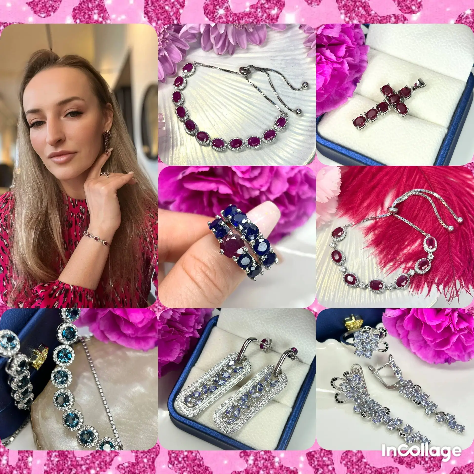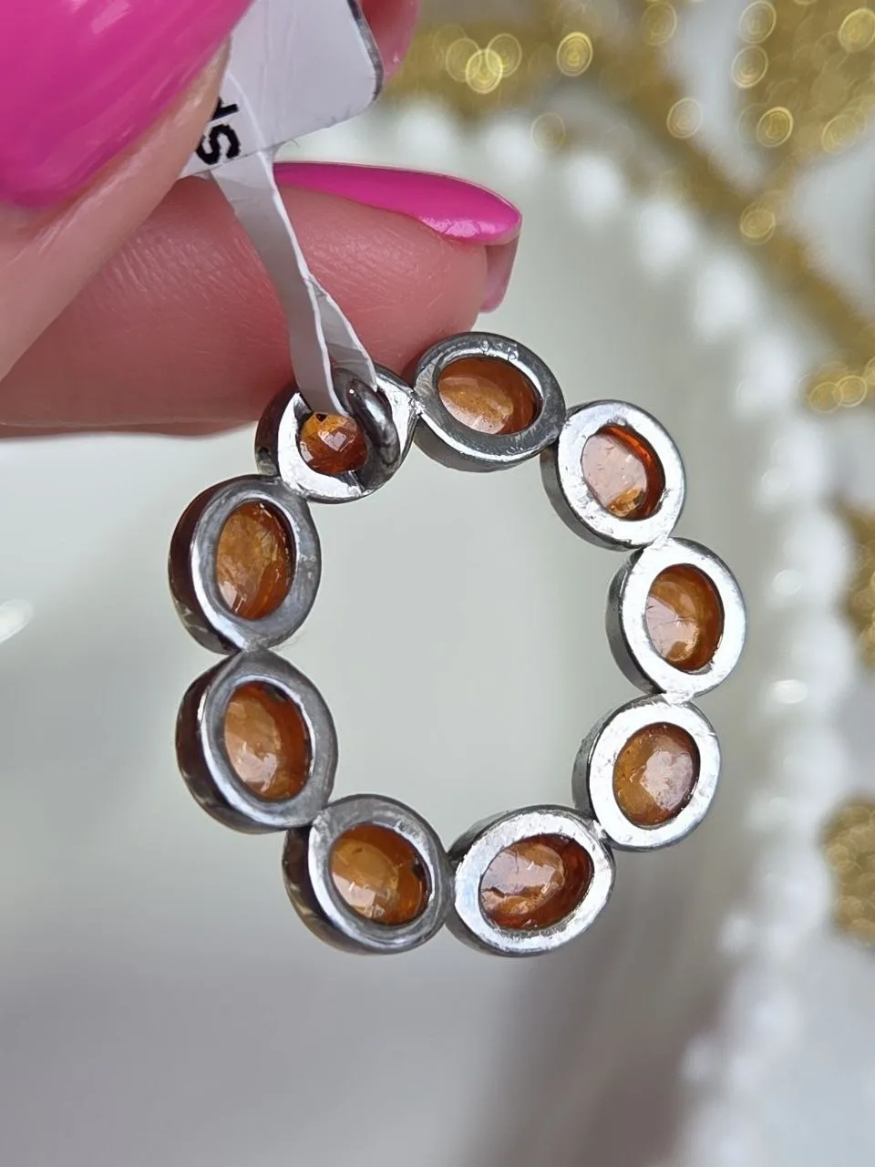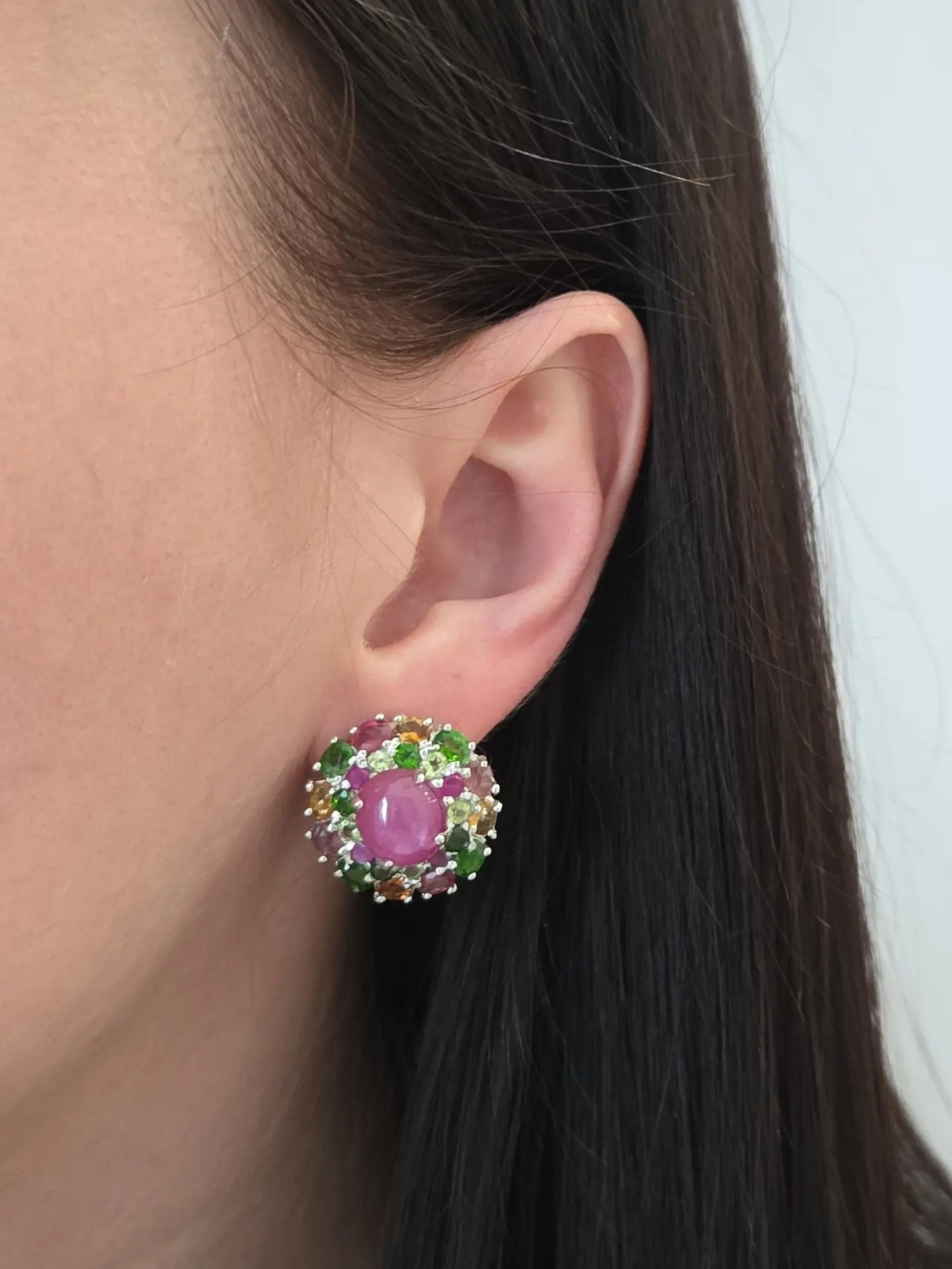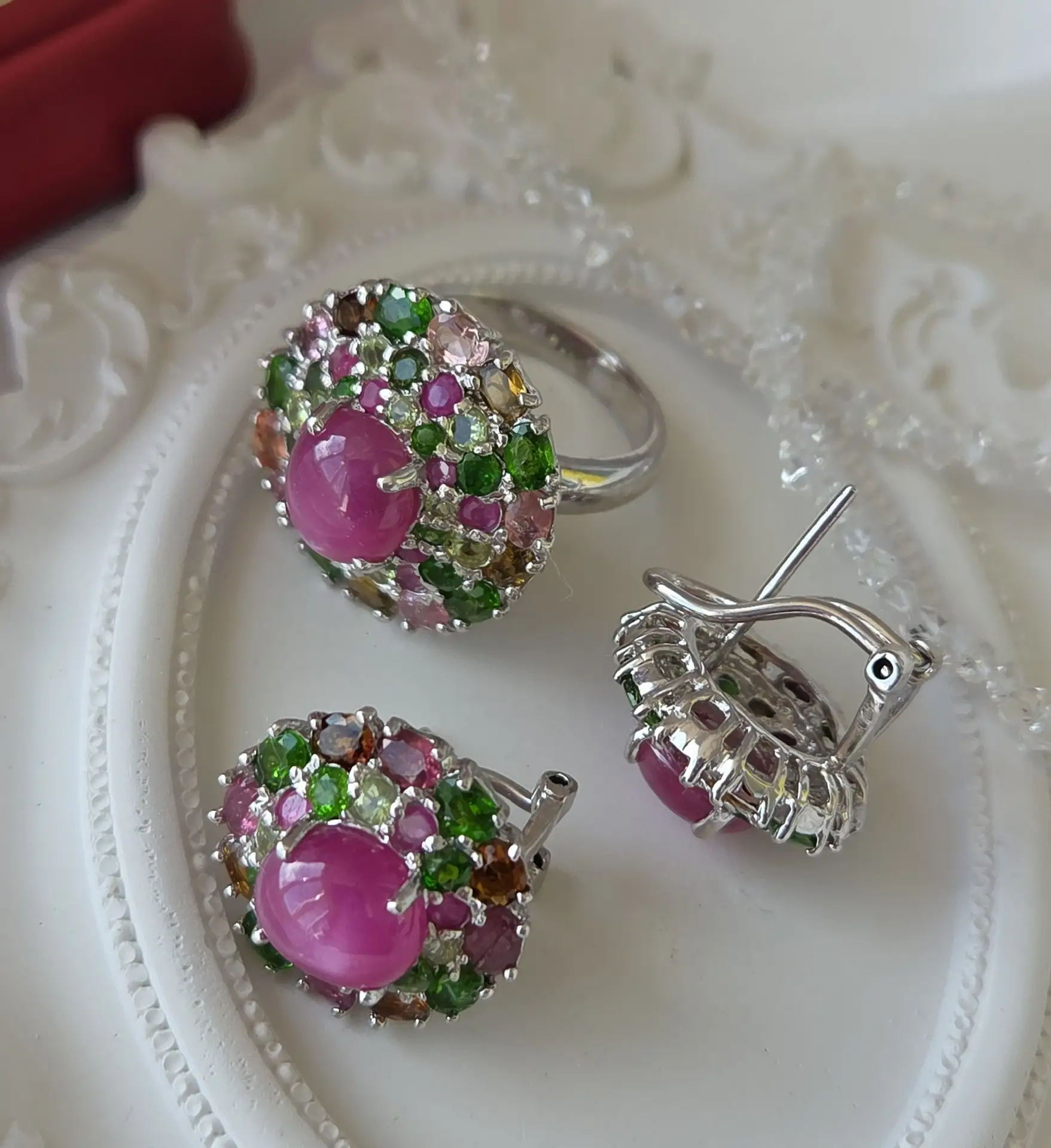 В центре кабошоны рубинов, россыпь хромдиопсидов, рубинов и цветных турмалинов!