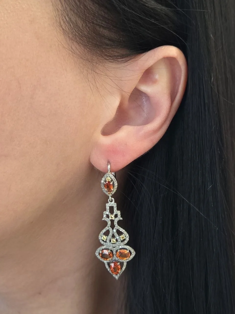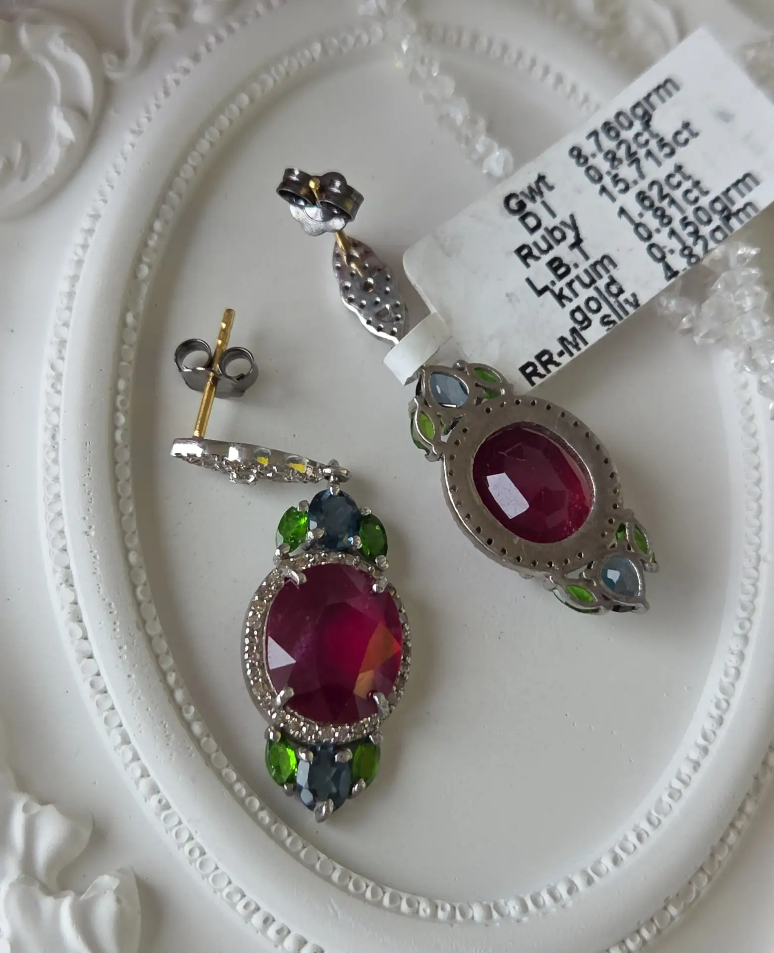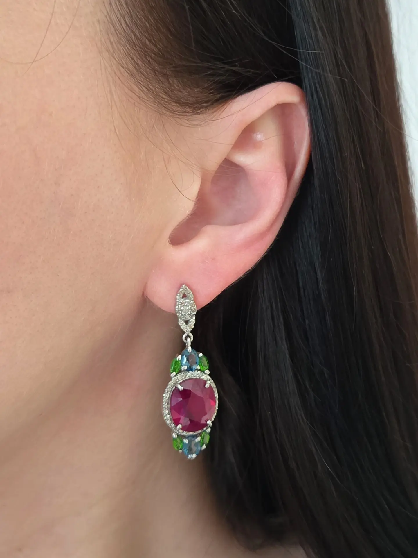 Великолепные серьги с рубинами, хромдиопсидами, лондон топазами и бриллиантами!