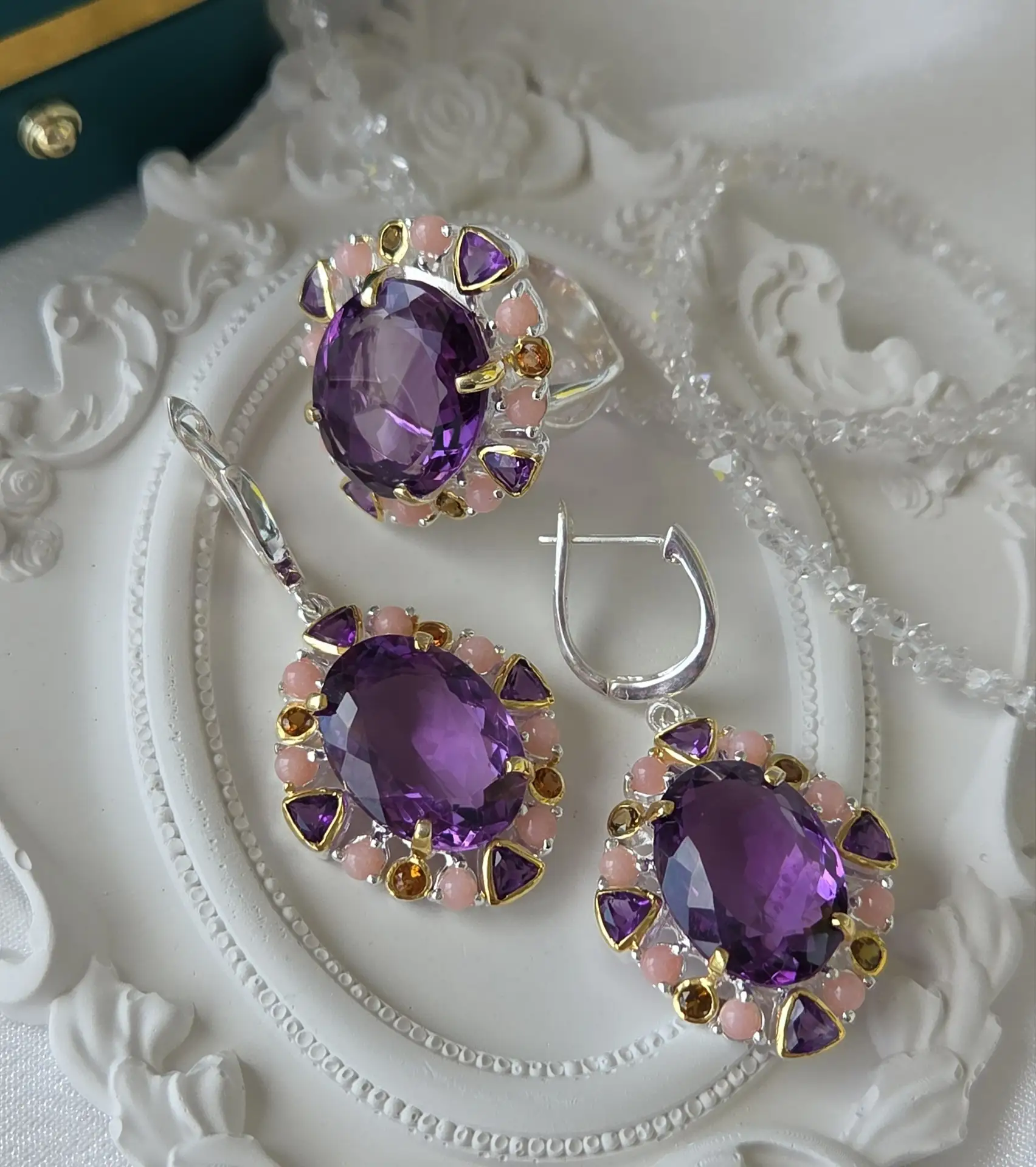 Великолепный гарнитур с насыщенными аметистами, розовыми опалами и цитринами!