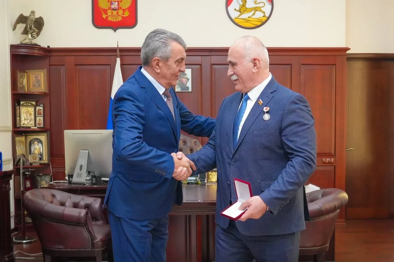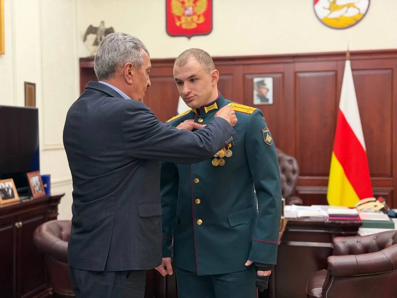 Вручил медаль «Во Славу Осетии» Георгию Остаеву