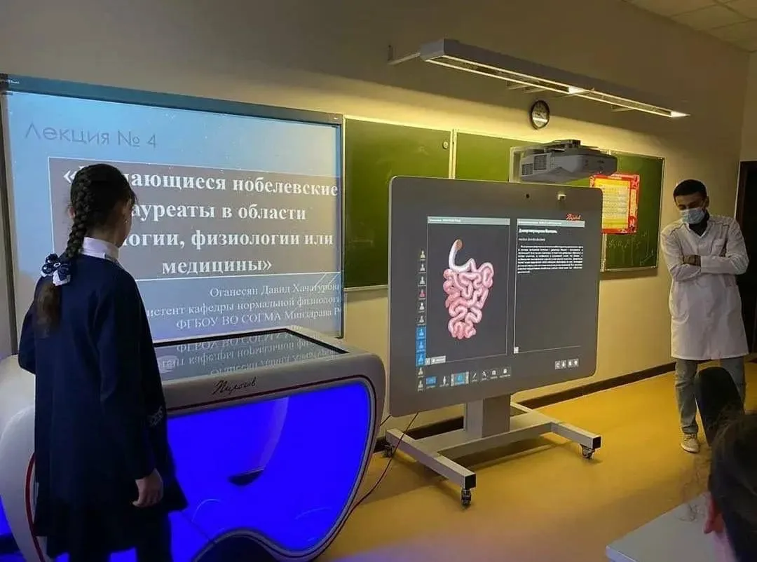 Классы оснащены современным оборудованием: интерактивными столами «Пирогов», 3D-атласами по анатомии, виртуальными лабораториями, тренажёрами для отработки хирургических навыков и сердечно-лёгочной реанимации.